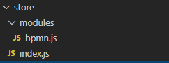1.在store目录下新建modules目录,modules目录下创建模块化文件bpmn.js,目录结构如下