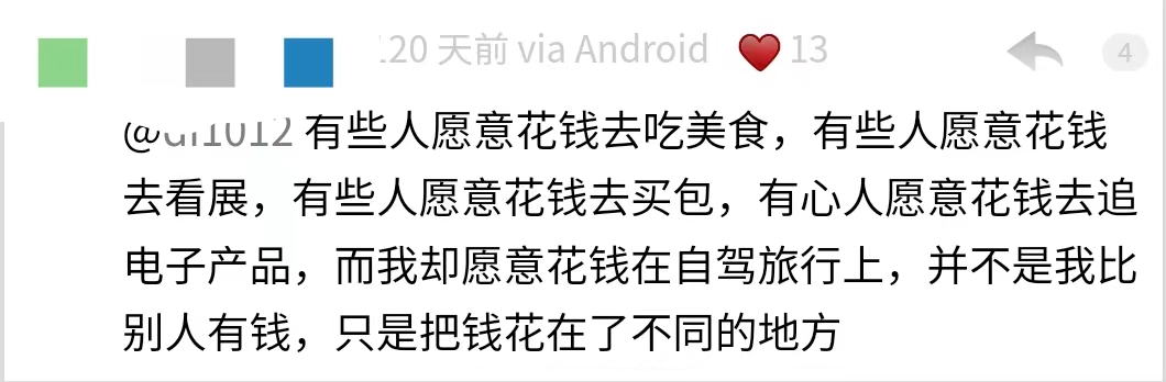 经常的旅行让很多朋友误会我们既有钱又有闲,对于有钱这一点我之前回复过朋友们:有些人愿意花钱去吃美食,有些人愿意花钱去看展,有些人愿意花钱去买包,有些人愿意花钱去追电子产品,而我却愿意花钱在自驾旅行上,并不是我比别人有钱,只是把钱花在了不同的地方