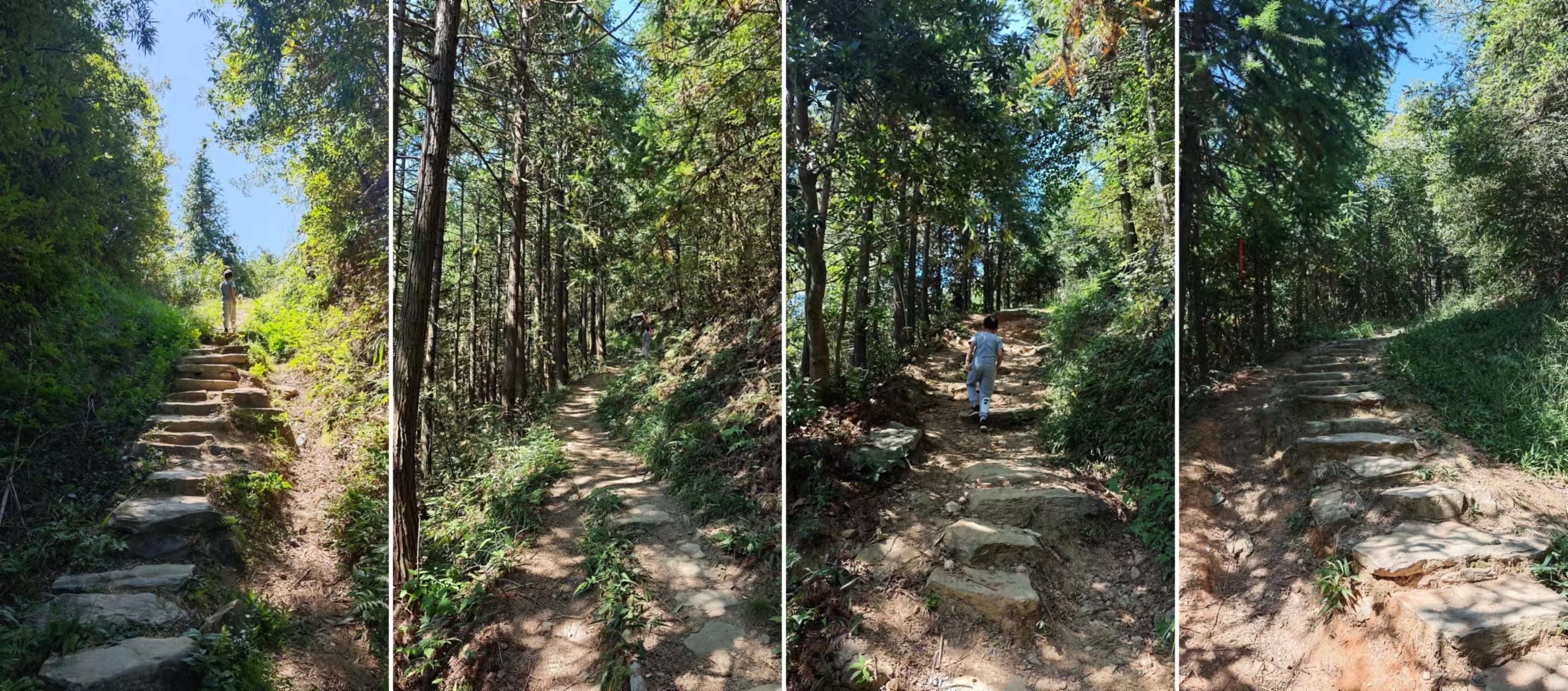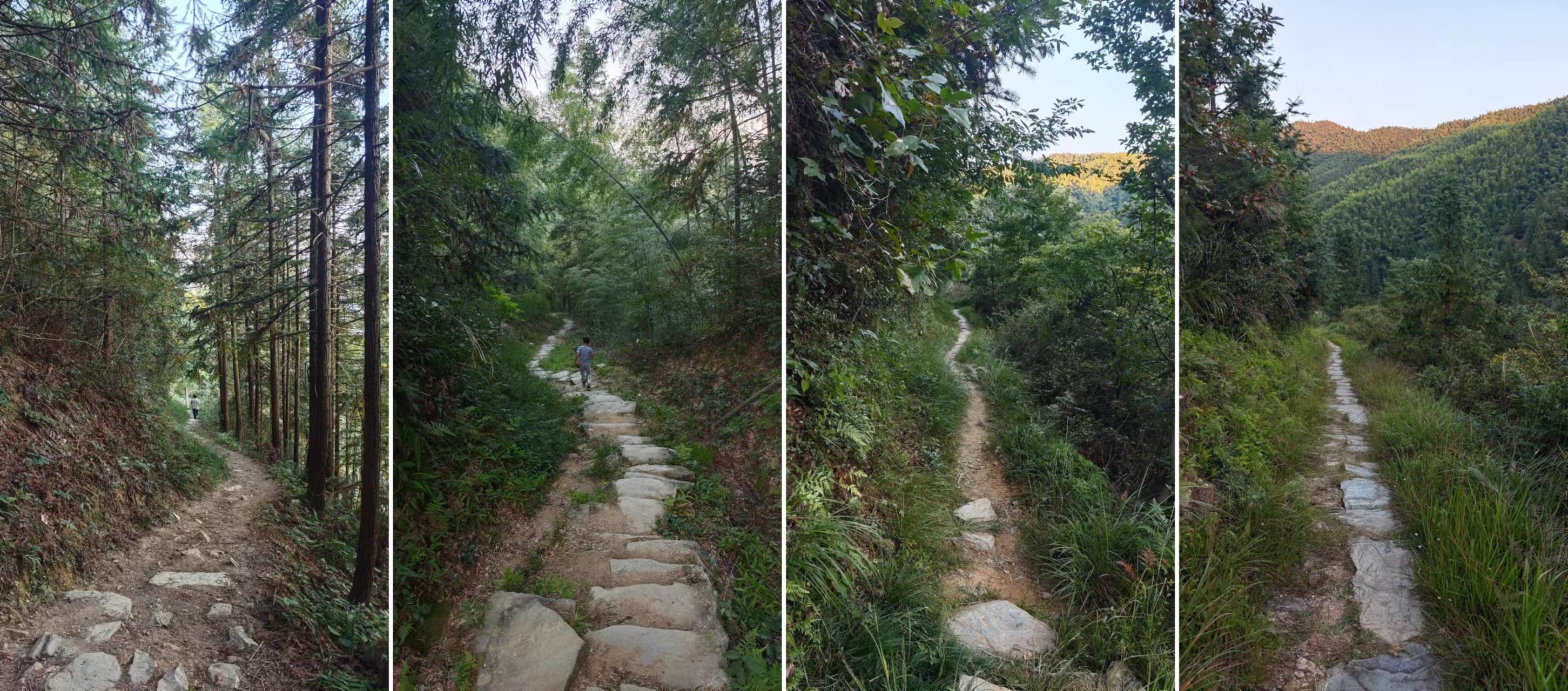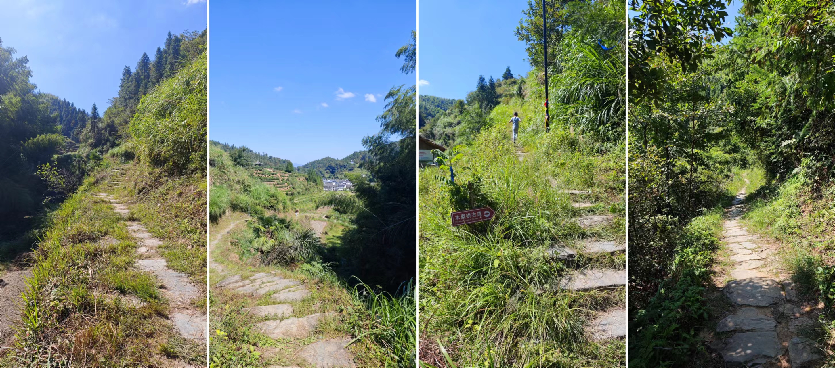 村子逛了一个遍,风景里也坐了一下午,这美景根本看不够,下午4点半,必须要回去,不然要赶夜路了,原路返回,回程要稍微快一点,并且省力很多,仔细看了下古道,似乎靠近中间的位置有个分界点,木梨硔一侧都是石板路,路况稍微好一点,应该是后边修过的,而祖源一侧则较为原始,石头+石板,没有规则,高低不等,这样的路走起来要更加费力