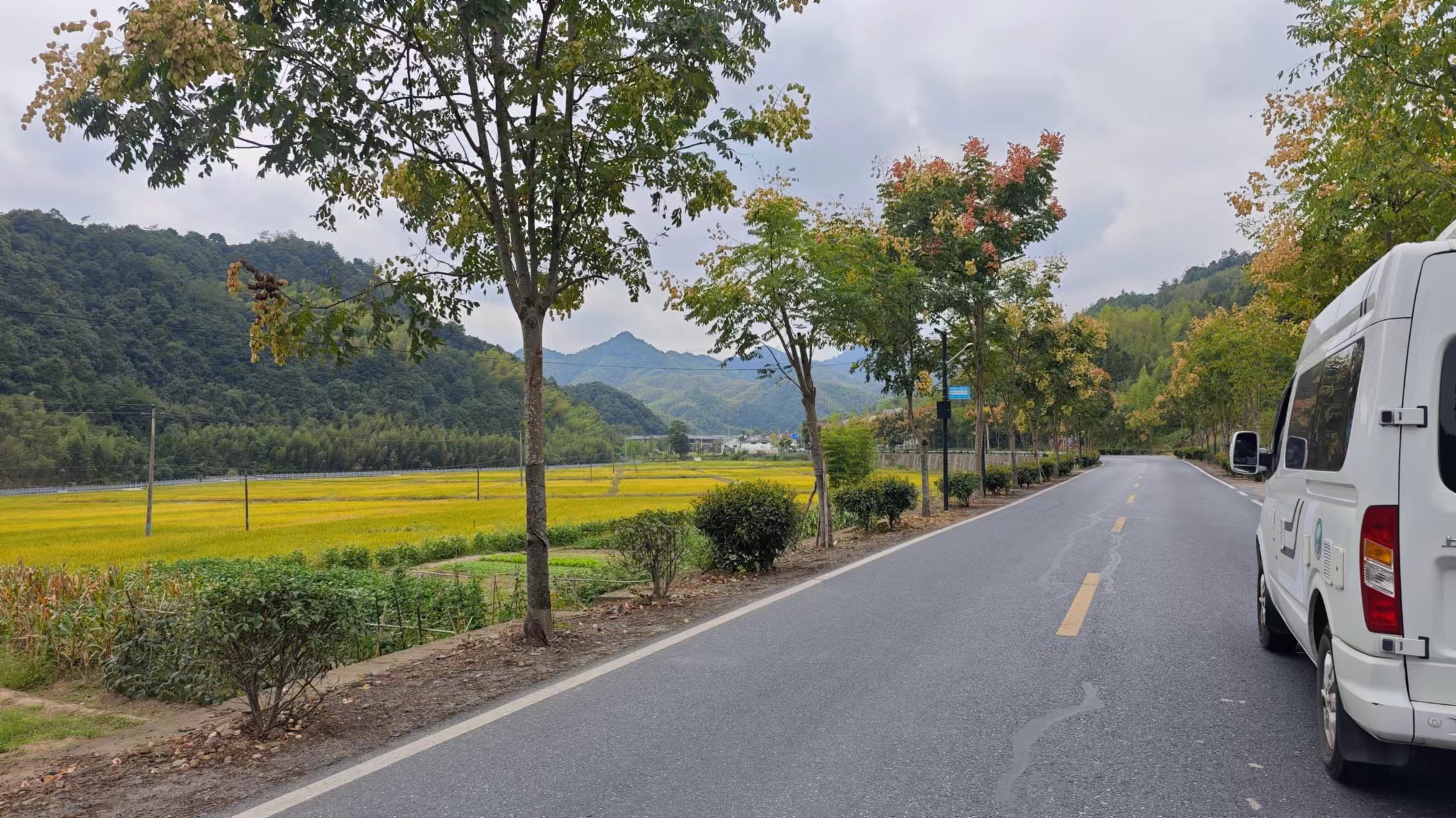 这一路过青山湖、过西径山、过太湖源,离开市区就很漂亮,连绵的青山,金黄的稻田,还有这长满花的树连绵几十里,一个人自驾在这风景大道上,轻松惬意。大自然真的能够治愈,裁员带来的焦虑不安的情绪已经扫去了大半,还是要出来走走,离开城市,走进自然里,自然能够治愈