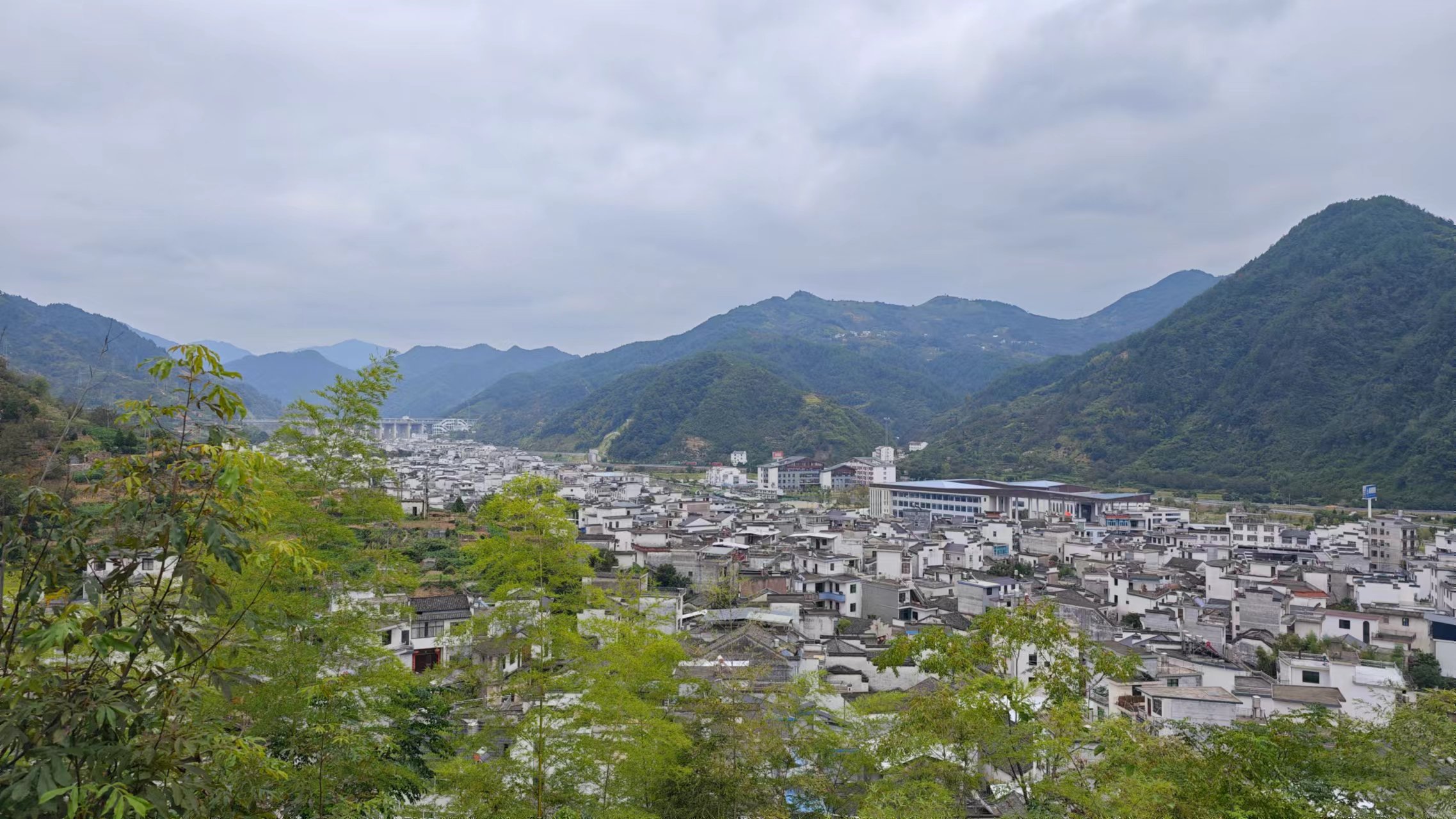 歙县多山,境内雄峰挺拔,峻岭逶迤,丘陵起伏,溪谷纵横,有黄山山脉高耸于西北,天目—白际山脉屏障于东南,全县绝大部分地区都属于丘陵山地,从进入歙县开始几乎一直山路,这个山路要比临安那边的更有山路的感觉,并且沿山路两旁遍布村庄,更有生活气息,我觉得挺好,虽然略有危险,但百姓出行得到的保障。群山之间遇一谷地,地势平坦,遂建成颇具规模的村镇,蔚为壮观