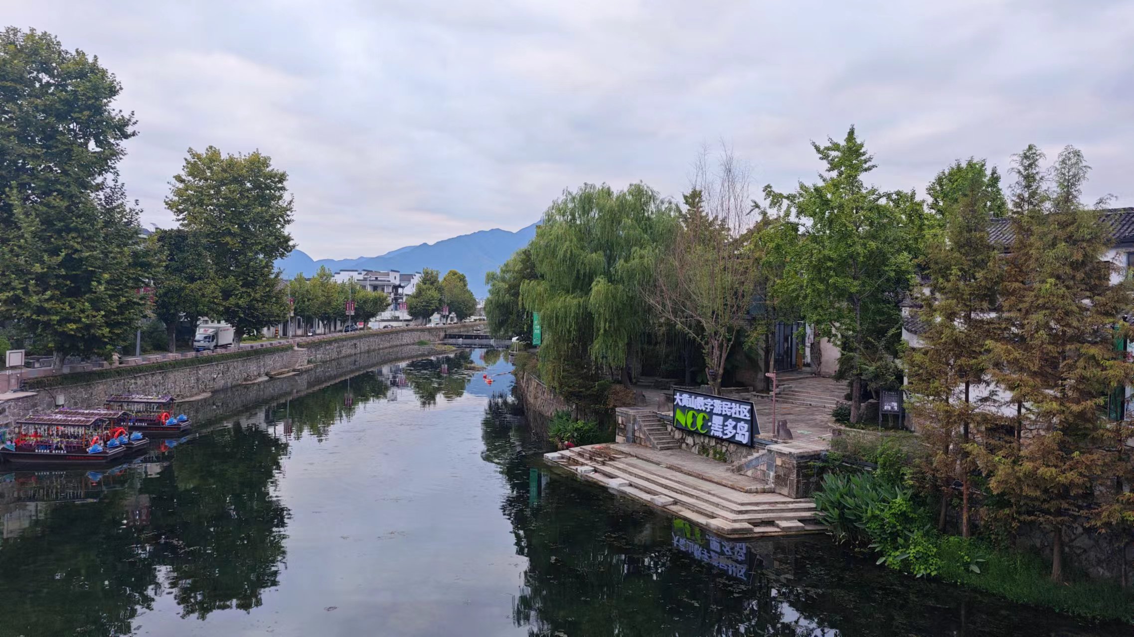 进入歙县县城之前的体验都不错,古徽州的感觉,从进入歙县县城开始,就像大多数的县城一样,少了点韵味。下午4点到了屯溪机场,这个机场很小,感觉没有见过这么小的机场,人不多,也少了点嘈杂,稍微等了一下,接上大灰回黟县。从机场到黟县,大概接近一个小时的车程,天色渐暗,看远处青山之间徽派民居点点,升起炊烟,感觉真的不错,后边几天还有时间要认真探索了。跟大灰也算是网友见面,虽说微信加了很多年,但是基本没有细聊过,车上一小时我们聊了很多,优秀的人会有一些优秀的特质,他真的特别厉害,不得不感叹。接近下午6点到达了黟县,只一眼就喜欢了这里