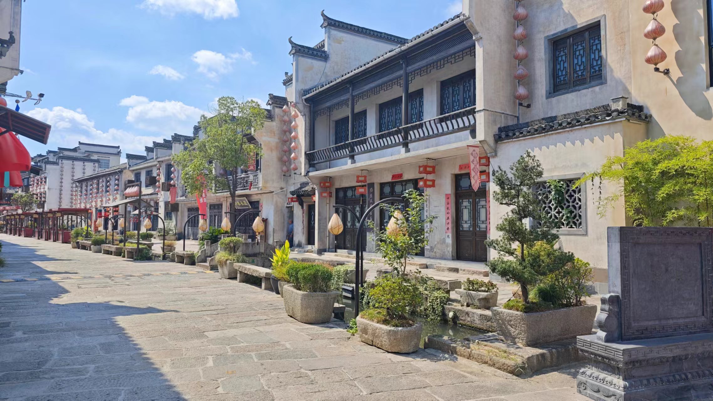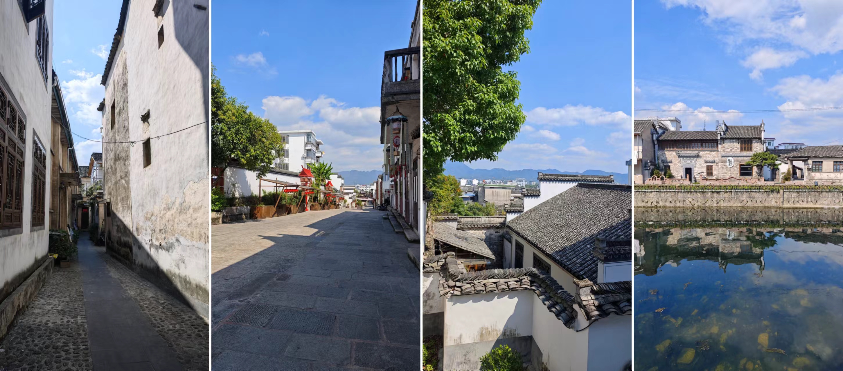 古城建的是真不错,街道中间有一条渠,水流动的,很干净,渠上还有石拱桥,小巧精致,两旁建筑也都皖南风格,街巷里弄石板路,也都能看得到过去的影子,但确实少了点人气,偶尔出现的一些电瓶车、摇摇娃娃机,以及套圈摊位也会显得与周围环境格格不入