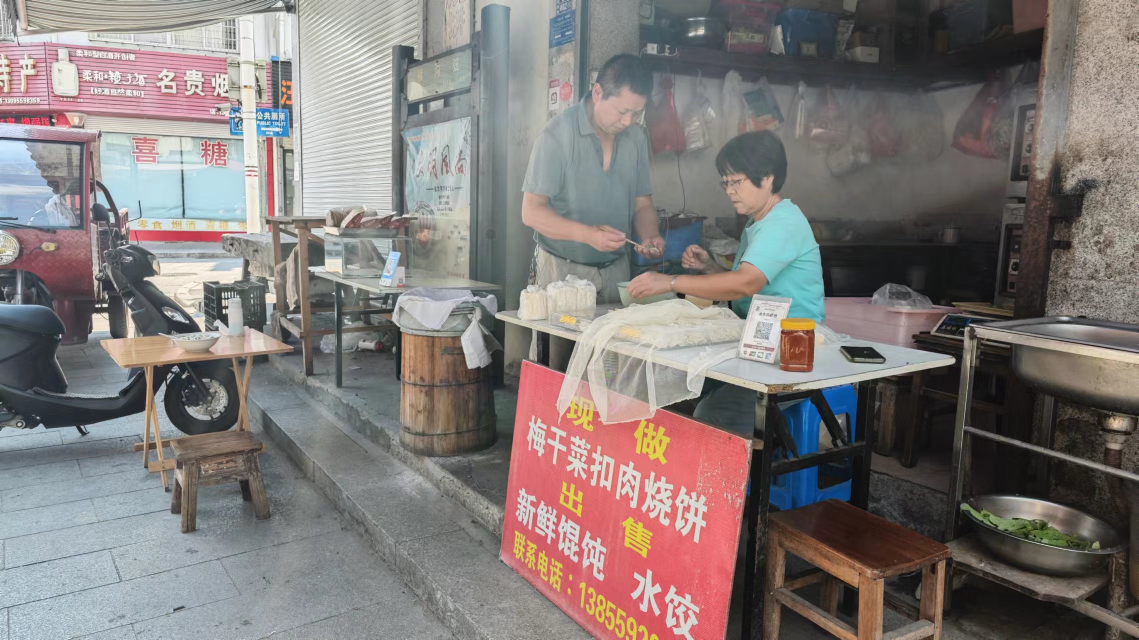黟县古城出来,继续探索这个小城,我有每到一个新地方走走看看的习惯,探索下有没有什么好吃的,好玩儿的,看看当地的一个生活方式和习惯,有没有什么独特的与其他地方不太一样的点。古城探索都是走路,出来看到了共享电瓶车,果断扫了一下,骑上电瓶车能加速探索