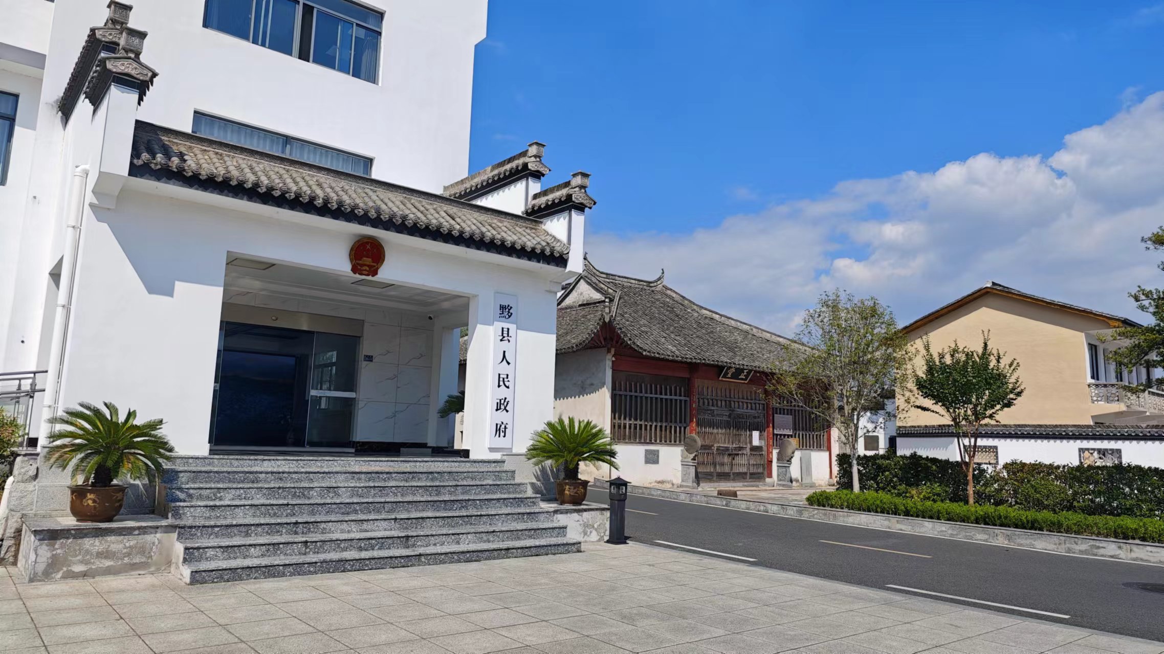 时间比较宽裕,就沿着古城随便走走,一不小心走到了县政府的办公楼,这个比较有意思,新的黟县县政府办公大楼气势雄伟,但在他的边上就是古徽州地区县衙建筑唯一地面遗存-县衘正堂,县衙正堂始建于宋徽宗宣和年间,现存为清光绪初年重修,坐北朝南,歇山式屋顶,飞翘角,正面四根柱子立在鼓形柱石上,支撑着梁头和额枋,顶重房低,庄严肃穆