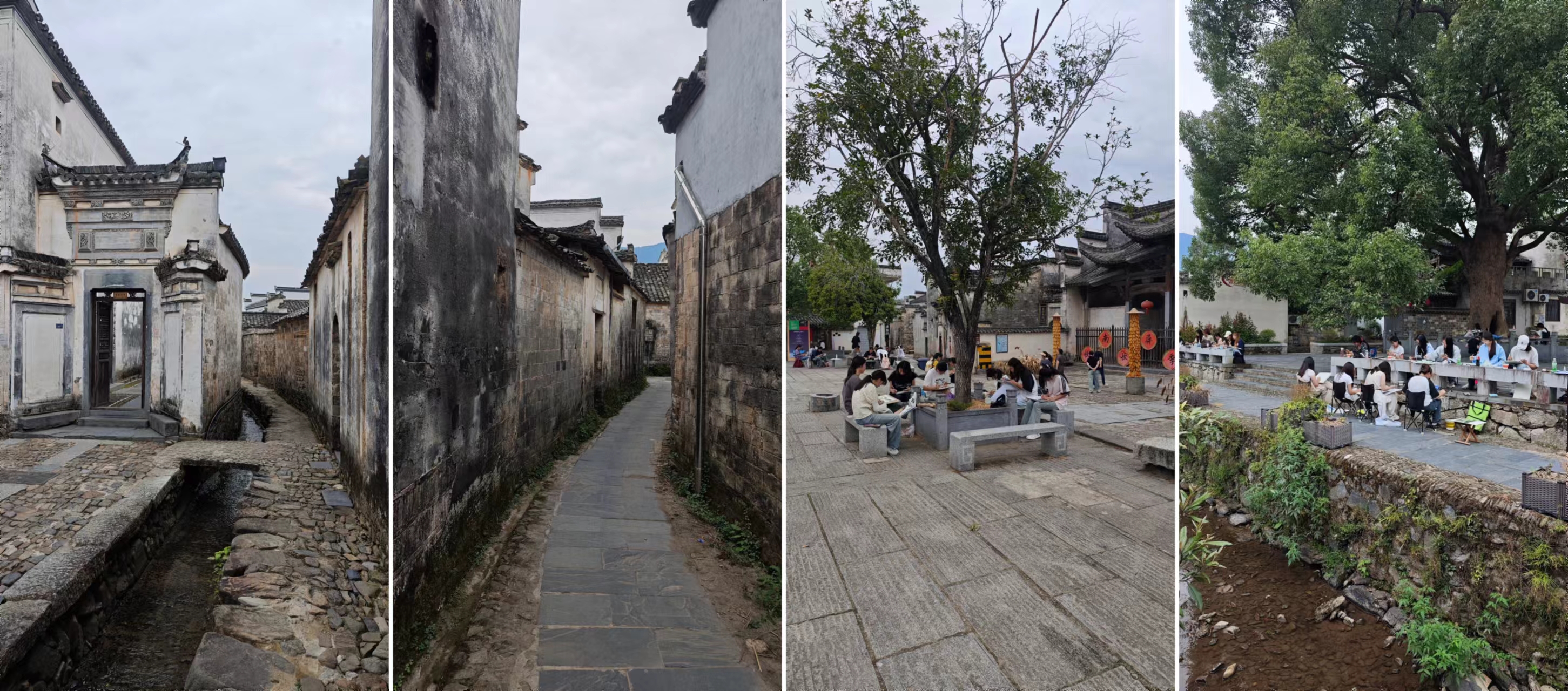 南屏村的祠堂大多坐落在村前横店街长约200米的一条中轴线上。其他的房屋也是分布在这条中轴线两侧,街巷很多,但都不是很宽,随便走走,别怕迷路,最终应该都会走到这条中轴线上,村子里除了偶尔出现的旅行团外游客很少,大部分的路段除了零星的当地村民外就是我,逛着逛着会想到在此拍摄的菊豆,有那么一瞬间有点恍惚,仿佛穿越。有一些学生来村子里写生,散落在村子各处