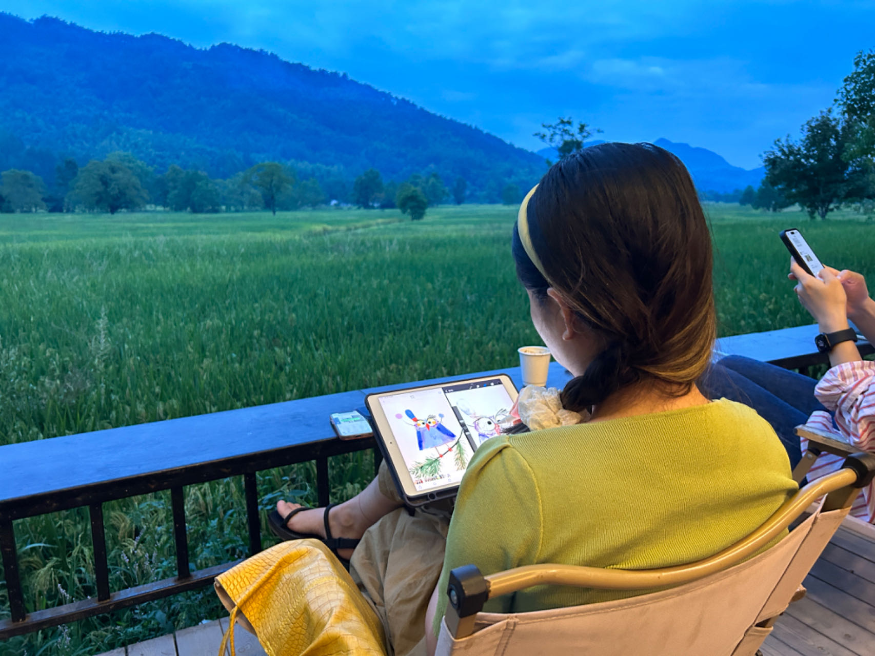 坐在徽涩记忆的楼顶,顺手拍了一张工作的照片,发到了数字游民的群里,我觉得我的环境已经非常舒服顶天了,没想到她们一个个的都是王炸的景观工位,真的羡慕了,若是每天坐在风景里写代码,那BUG会不会减少呢?