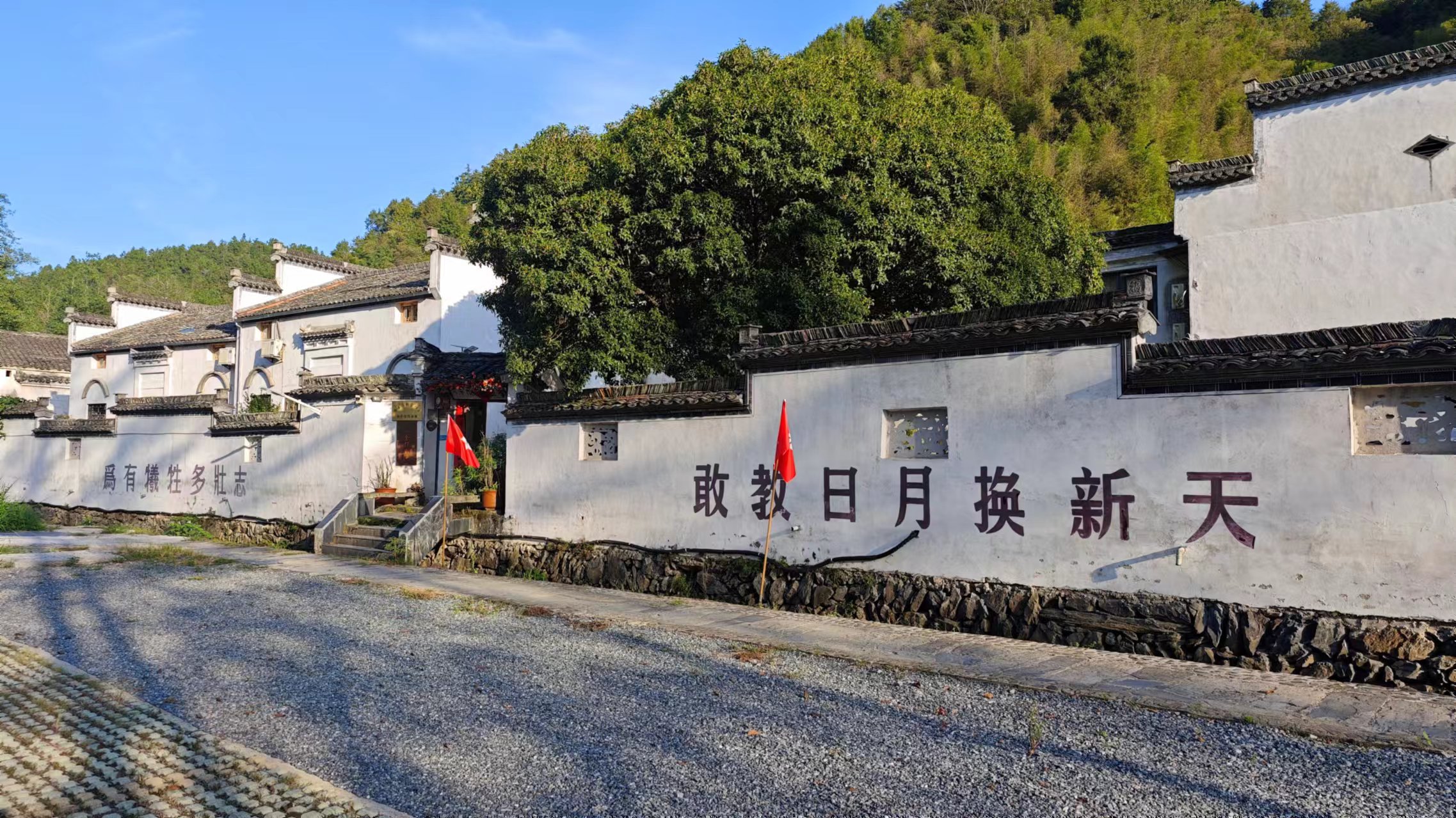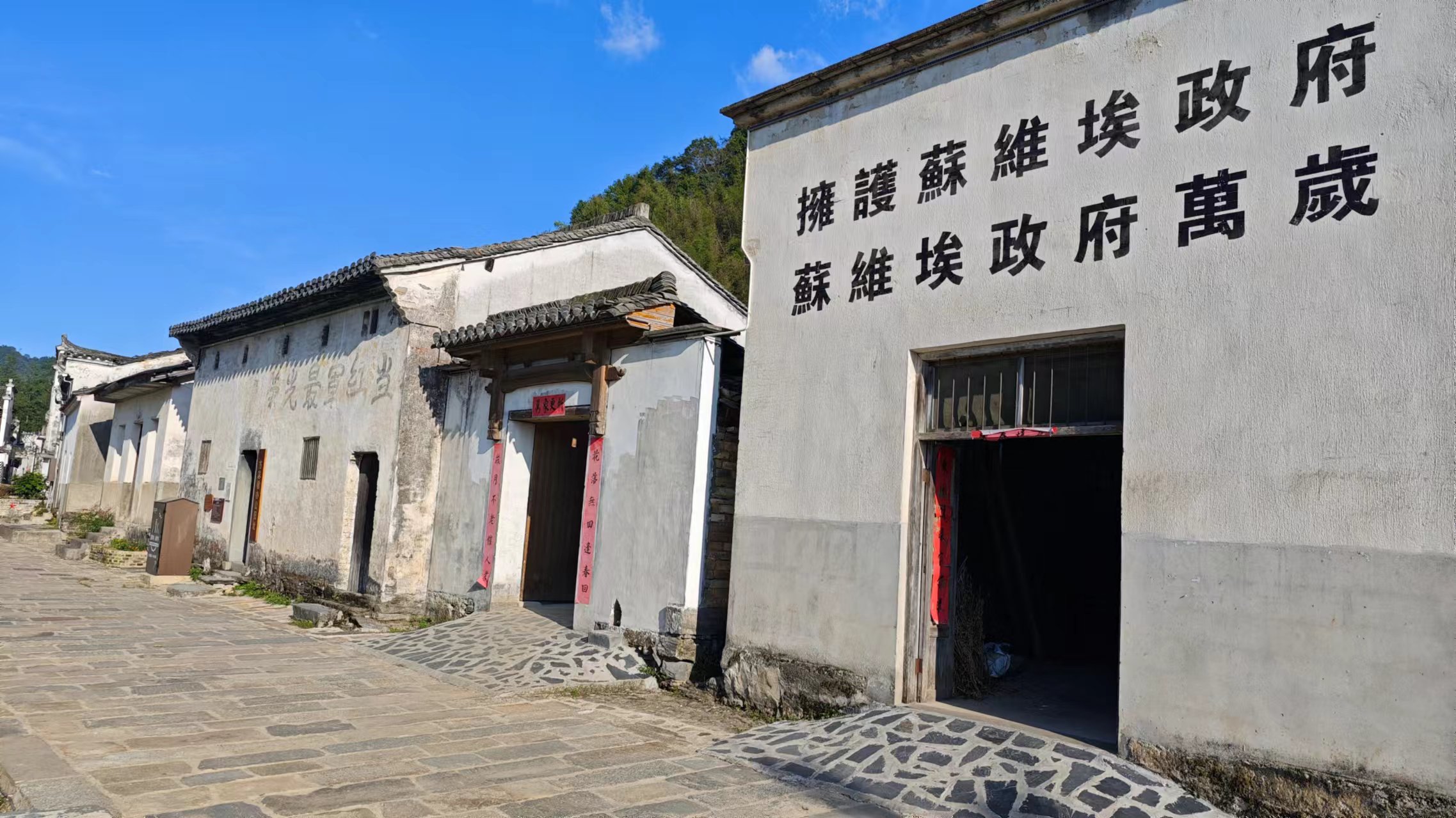 柯村山高林密,道路崎岖,交通闭塞。因处四县交界之地,当年国民政府对这里的统治力量相对薄弱,所以红军才选择了这里作为暴动的地点,从而建立了皖南苏维埃政府。柯村这个地方真的特别偏,距离黟县县城有四十多公里,我们开车过来一直山路,上上下下也开了一个多小时,现在条件好了,路好了,还要这么久,可以想象当年是个什么样的情况,如今和平的年代,看到村中的白墙上依然会有当年的标语,仔细想想也还不到百年时间,天翻地覆