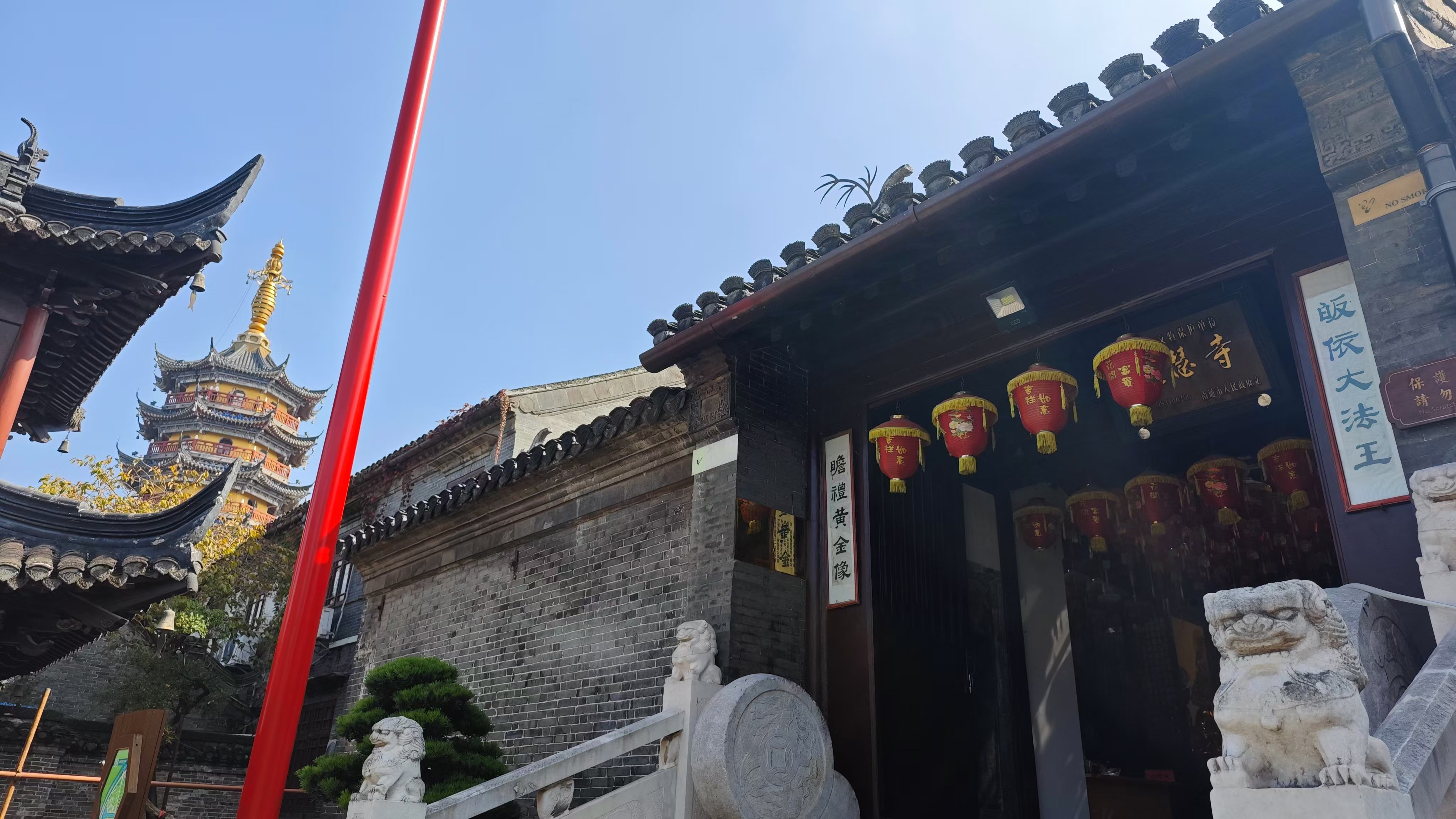 吃饱饭就开始今天的行程,先去定慧禅寺,离的不远,走路即可。定慧禅寺始建于隋开皇十一年,明万历三十五年重建大殿和金刚殿,改山门朝北,后陆续砌建钟鼓二楼和藏经阁、禅堂、祖堂、斋堂等,寺院平面布置呈回字形,楼堂环绕四周,宝殿坐落中央,形成水环寺,楼抱殿独特格局