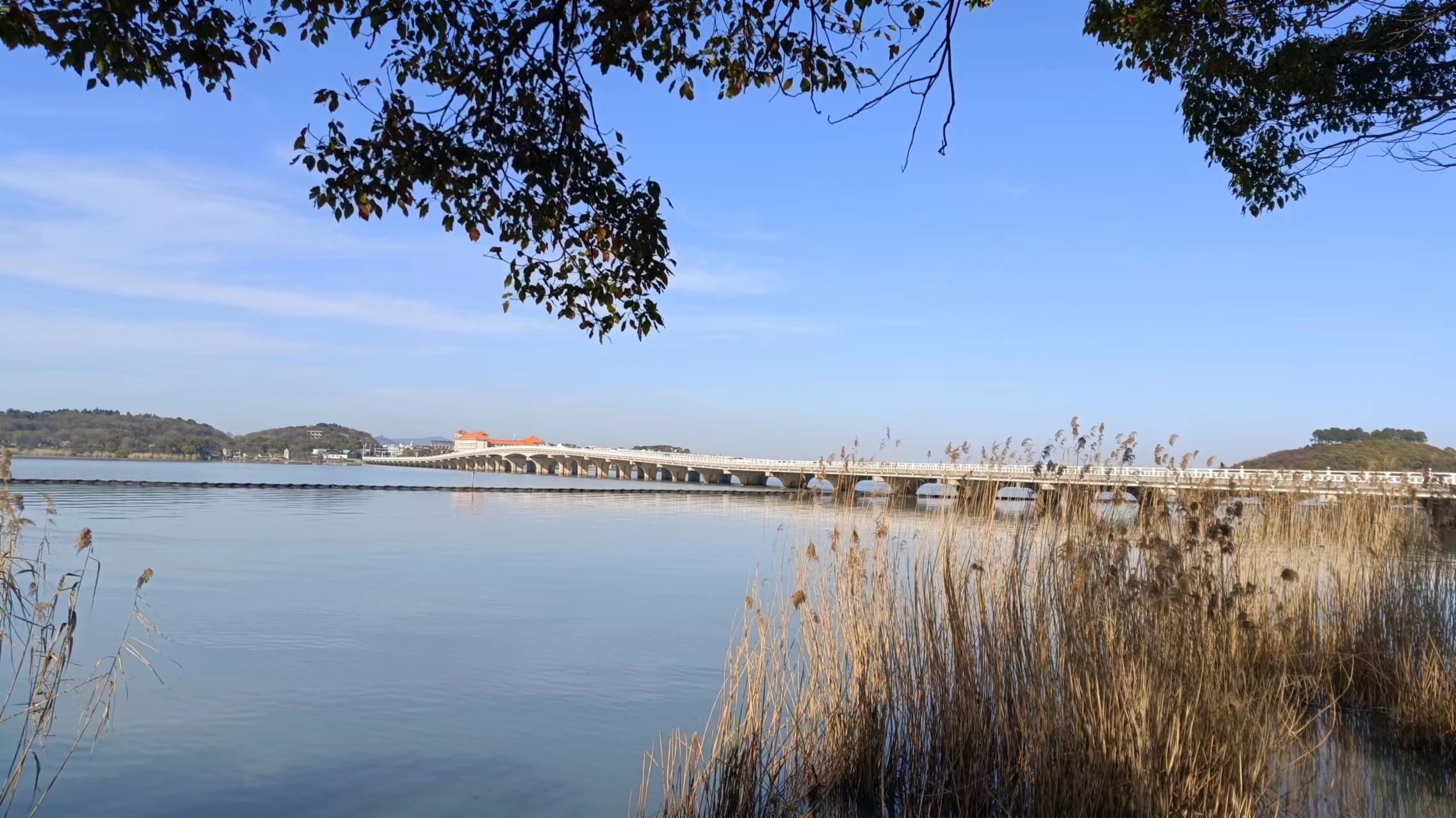 周六上午儿子有足球活动,带他去踢足球,11点踢完球回家简单搞了点吃的,就出发了,导航显示156公里,需要2小时13分,不赶夜路,距离也不远,这一路开车很轻松。一口气从上海开到苏州,西山收费站下高速,沿太湖大道,过太湖大桥,这一路先浅浅感受一下太湖的风光,阳光很好,是轻松愉悦的心情