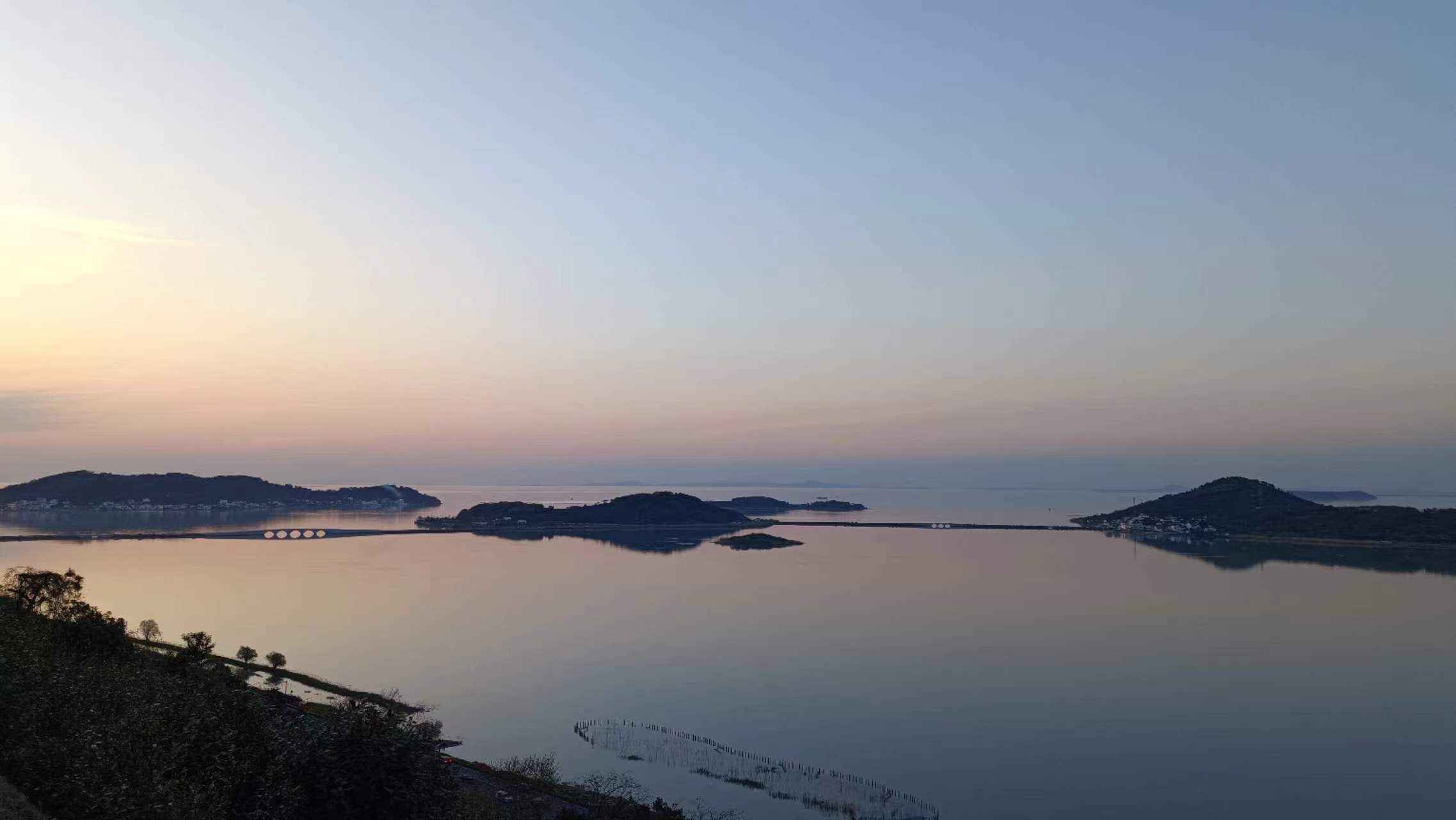 天色渐暗,在山顶看夕阳缓缓落下,最终消失在湖里。远处有两座大桥连接了三个岛,看地图是阴山岛,之前几次都没有去过,等下要去逛逛。西山岛太大了,每次来都有惊喜,这个金铎岭之前也没有来过,首次来都是惊喜