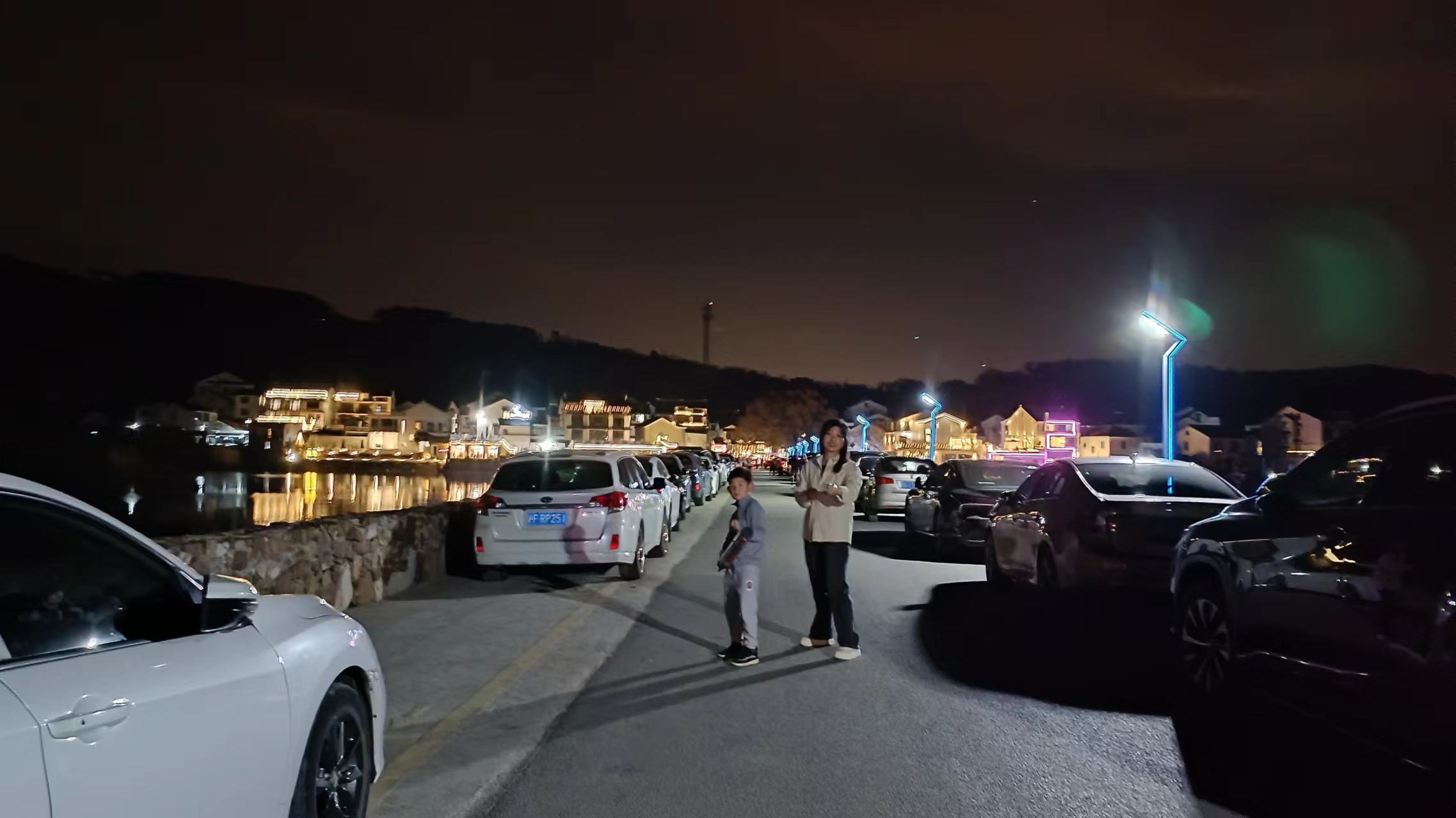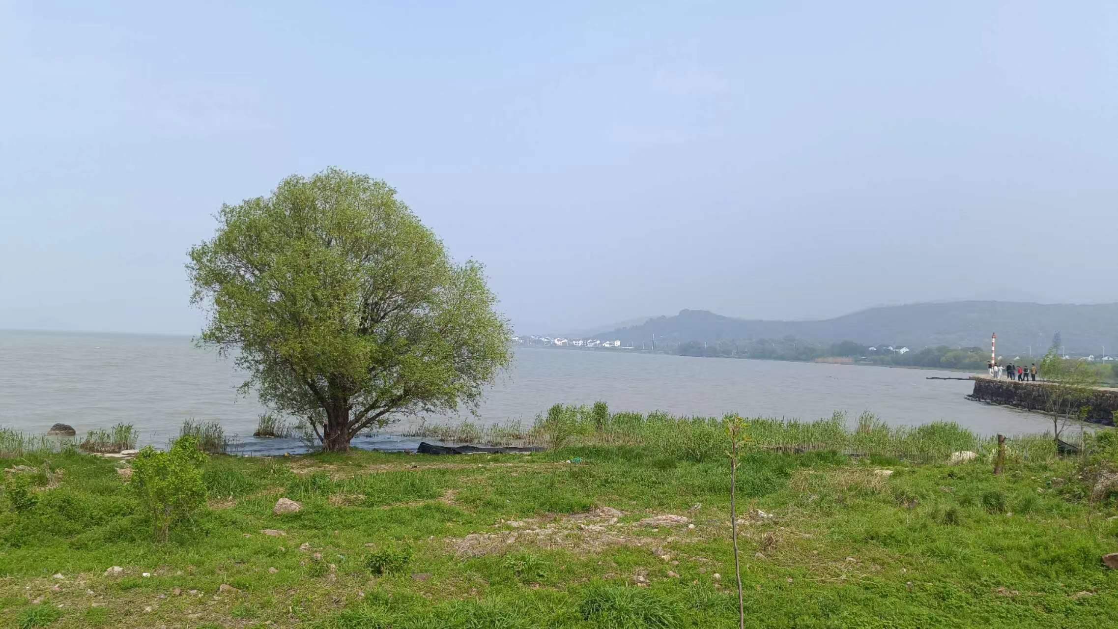 坐在湖边,吃碗泡面也很香。往前走不远就是阴山岛,阴山岛深入太湖中,与本岛只有一条长堤相连,堤坝不宽,勉强过对向两台车,极易堵车,岛上也几乎没有停车位,所以白天天气好就不要开车上岛了,这条长堤拍照很出片,是个网红打卡地。岛内是个村子叫阴山村,村口有棵1800年的古樟树,边上还有一家咖啡店,除此之外商业不多,有许多民宿,可以住在岛上,体验岛民生活。晚上到了这里岛上灯火通明,霓虹闪烁