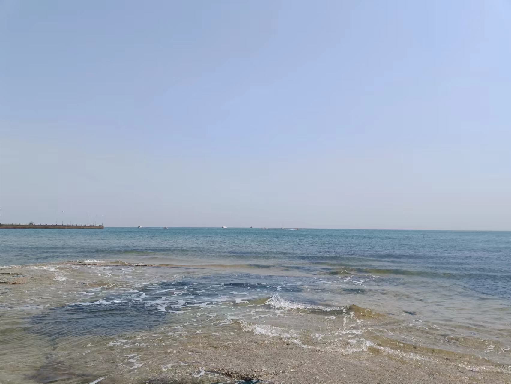 驻车的具体位置在灯塔景区与世帆赛基地中间的绿舟南路上,路两旁有免费停车位,离望海广场很近,大约一百米左右,早上起床先去望海广场看海,当看到的第一眼真的给了我惊喜,完全没有想到紧邻城市的大海还可以这么清澈透亮,海边的沙滩可以这么干净细腻