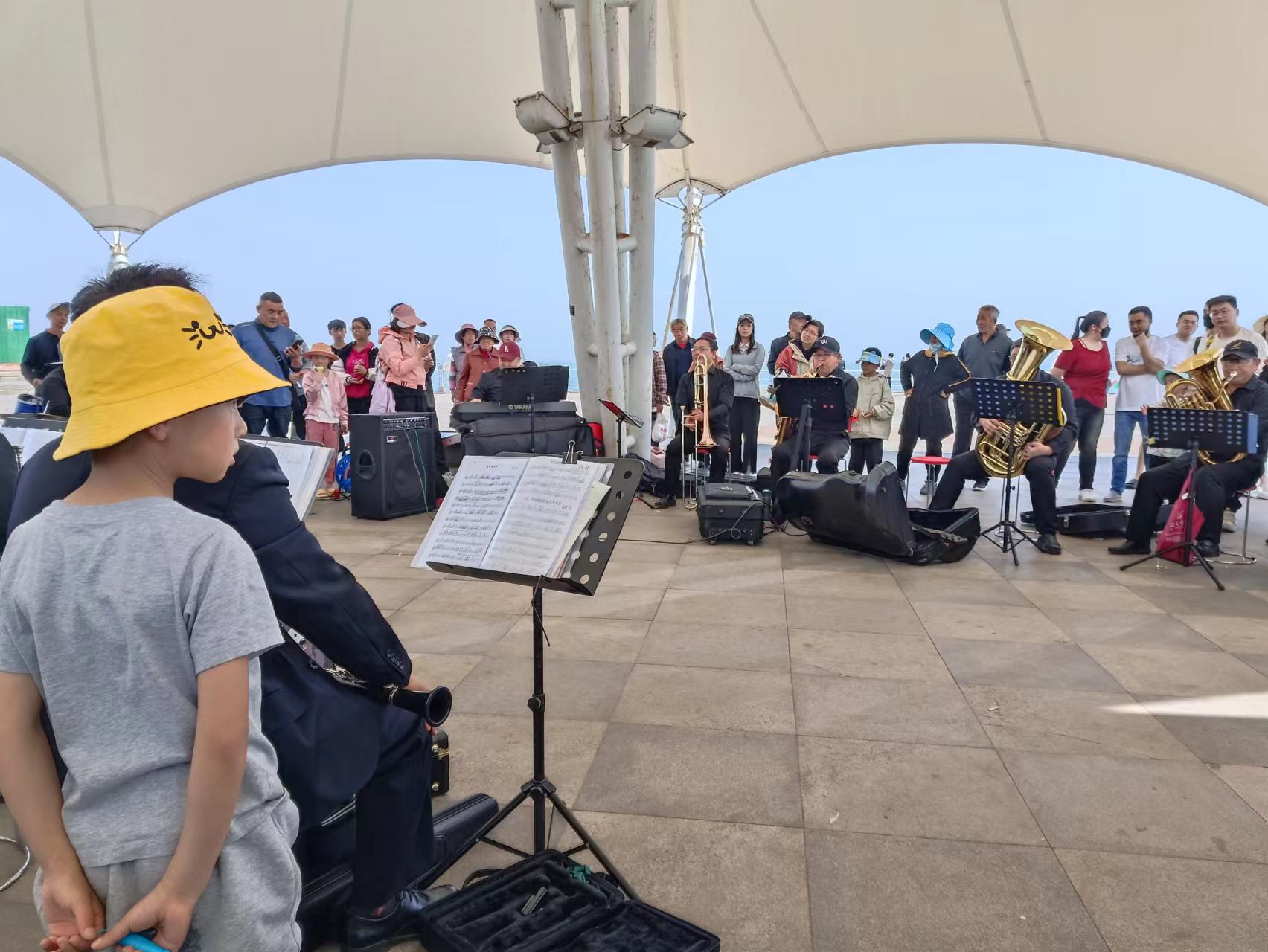 望海广场上有一个本地的乐团在演奏,聚集了很多人在欣赏,我们也去听了下,各种乐器的声音混合着大海的声音交织在一起毫无违和,看上去乐队成员的年龄跨度不小,来之前听说有一种生活叫日照,我在想这若是我的退休生活也不错,乐队中途邀请一个路过的姐姐上台唱歌,开口惊艳,高音浑厚有张力,非常专业,一曲罢了,掌声雷动,姐姐说:欢迎大家来日照,竟有点感动