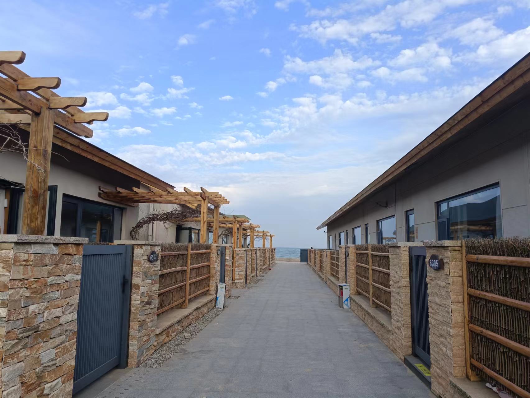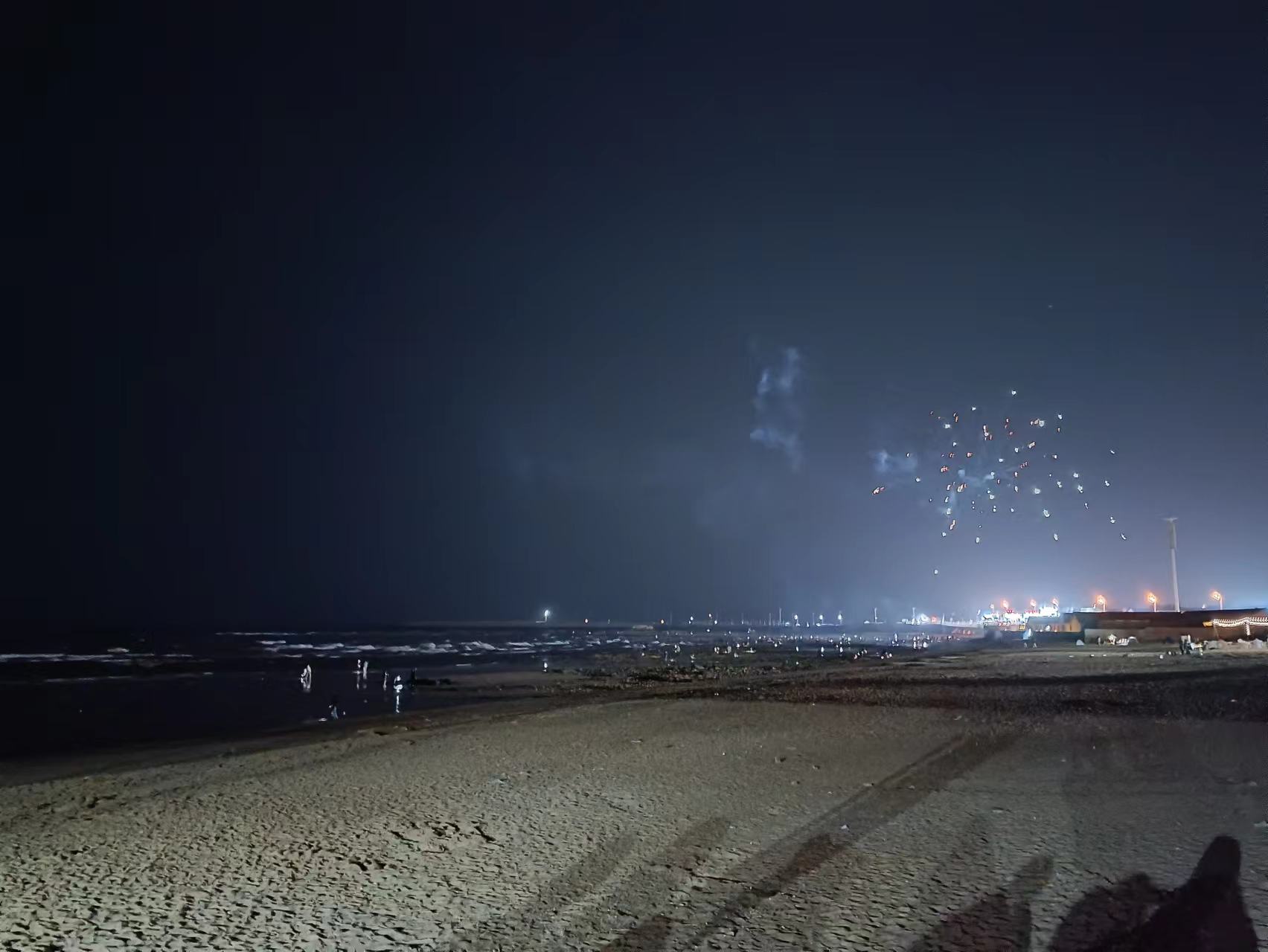 吃完饭想找个海边停下来喝点,昨天打的鲜啤还在冰箱里放着,于是整了个凉菜,翻了翻地图,沿着海边走误打误撞到了海洋美学馆酒店,酒店边上的停车场可以停车,离海也近,于是我们停车,先去海边逛了逛,这里的海也不错,不远处还有人在放烟花,还有人在赶海