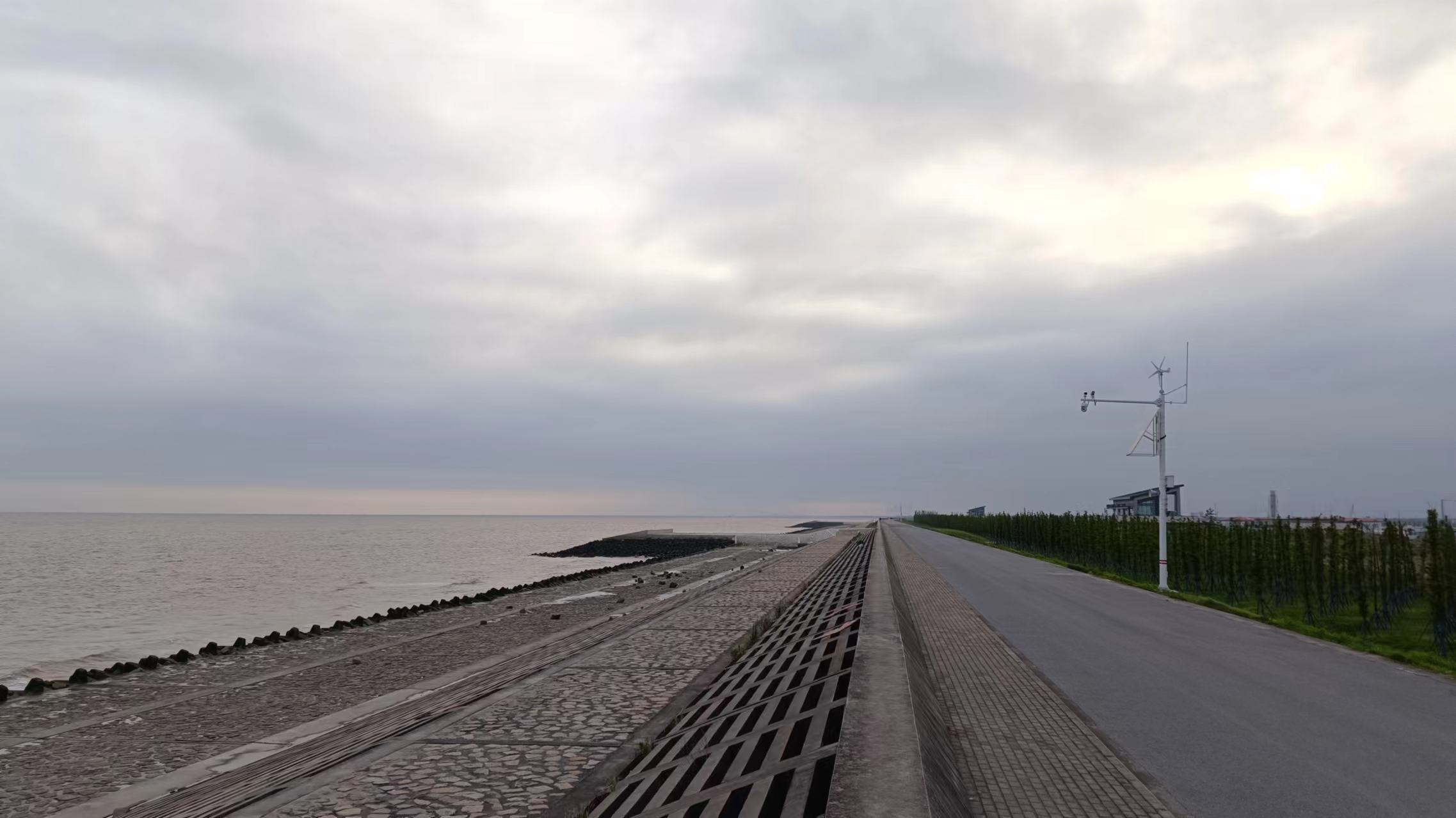 看了地图才发现,这里离海边不远,虽然上海的沿海地区看到的大海都比较浑浊,并没有什么美感,但既然离得这么近,就想去看看,于是走上了海堤路,虽然叫海堤路但离海还是有点距离的,并看不到大海,在一个岔路口能走到海堤的地方停车,去看了看奉贤区的大海,灰黄色的海水,并不好看,但还是辽阔的,闭上眼睛也能听听海浪的声音,如果你想来看看的话可以导航宁德时代智能科技,门口的路直达海堤