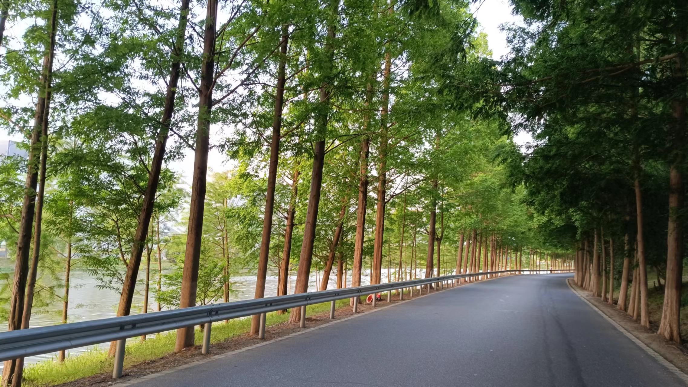地图上看随塘河路并不长,大概也就15公里的样子,西起海湾镇的海农公路,东与五四公路相连,我们没有从最西边开始走,中途走上的随塘河路,这一段都很漂亮,往前走经过上海海湾国家森林公园。上海海湾国家森林公园是4A级景区,但是在上海的知名度并不高,感觉去过的人也不是很多,这可能是因为位置比较偏僻,以及收费80块钱门票的原因,我们几年前去过一次,个人觉得性价比不高,比较一般,不过据说秋天的红杉林很漂亮,如果你要去的话可以网上买票,能便宜不少