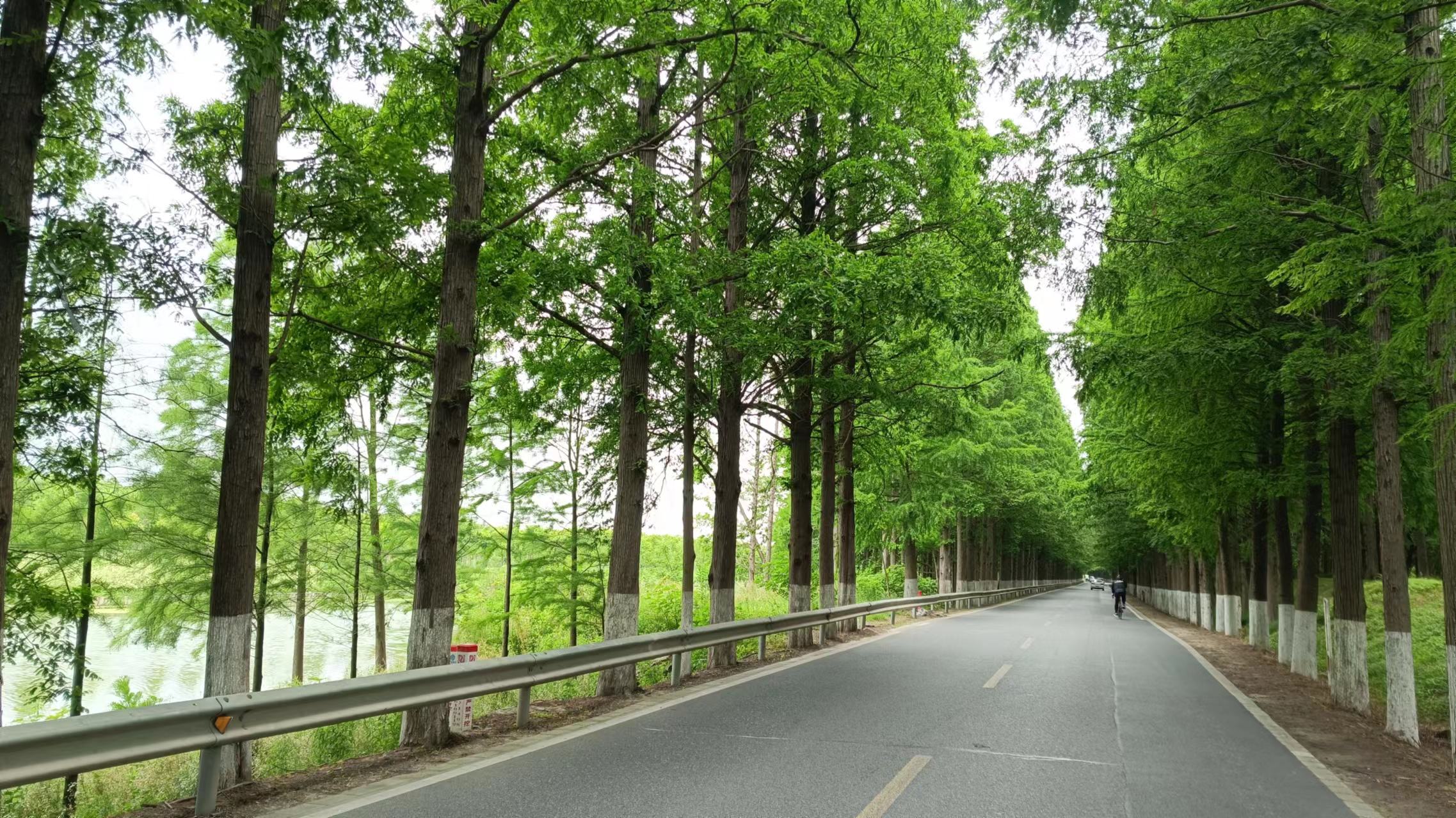 随着车子驶入随塘河路,就正式开始这条上海最美公路的自驾了,随塘河路沿着随塘河而建,路不宽,仅有两车道,车不多,偶尔驶过,路两旁种植了高大的树木,十分好看