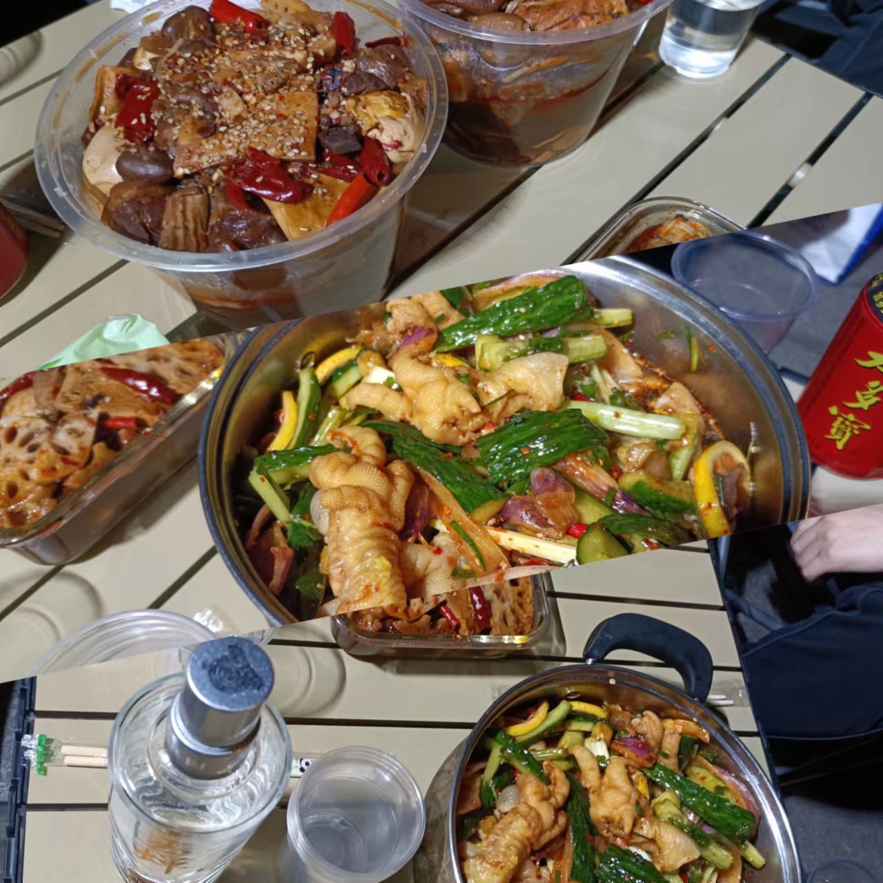 好友里有个大厨,我也能跟着沾沾口福,在家做了卤菜和鸡爪带着,味道非常棒,卤菜陪酒简直一绝,晚上12点一群人撑起桌子喝酒吃肉,好不快活。其中有两位朋友我们也是许久未见,早上临时问了下我们晚上出来玩要不要一起,没有周密的计划,没有详细的行程,就这都毫无犹豫的就出来了,再见面毫无陌生感,一起喝酒聊天,说说笑笑,什么减肥养生的事情都抛在脑后