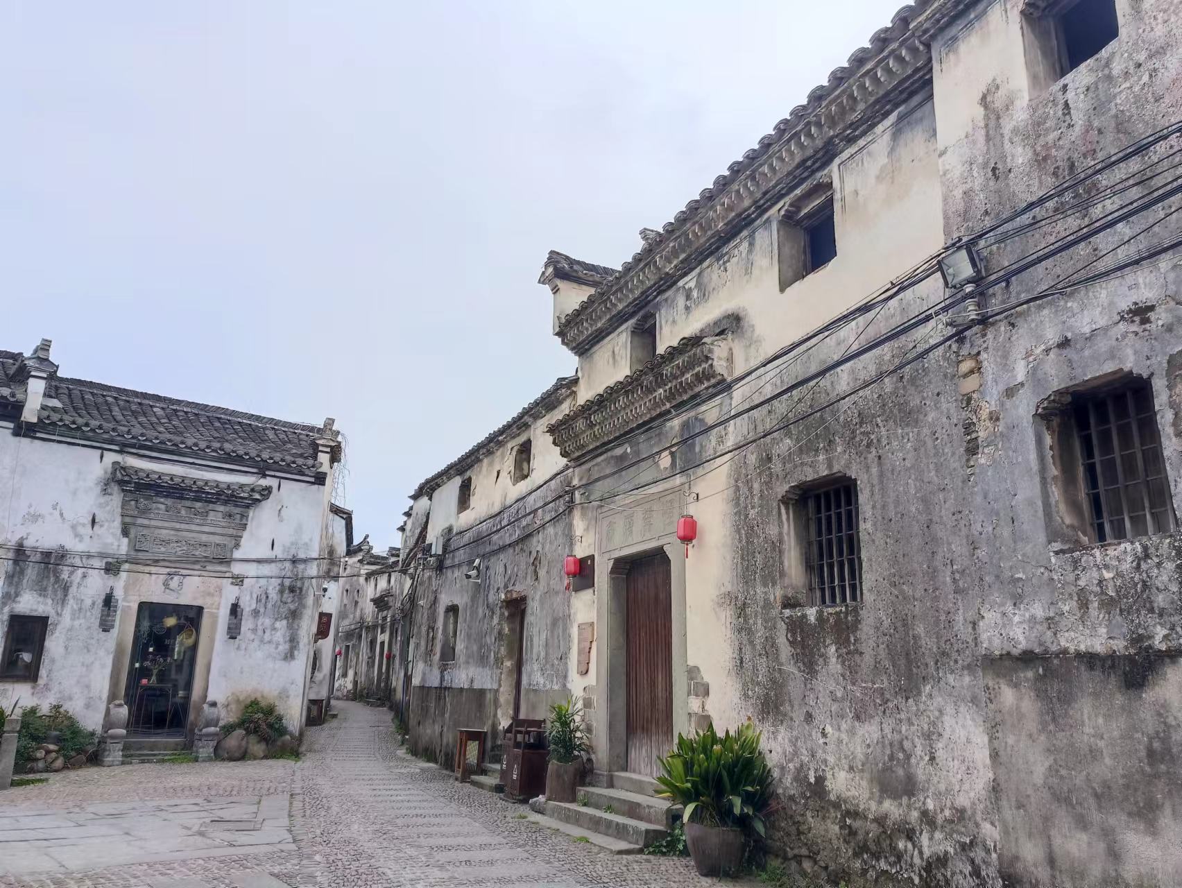 深澳村并不十分出名,所以来游玩儿的游客很少,走在古老的街道上看两侧白墙黑瓦,依然有历史的印记,抗日战争期间,水陆交通破坏,杭州绍兴沦陷区的盐布煤油等日用百货和浙西赣东地区的白蜡桐油瓷器等土特产品,由成群结队的脚夫运到深澳市场成交,其时深澳也是商旅云集,热闹非凡