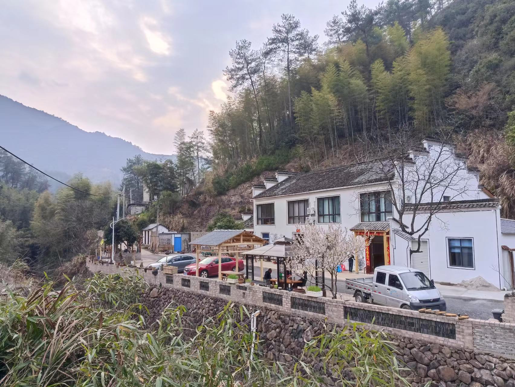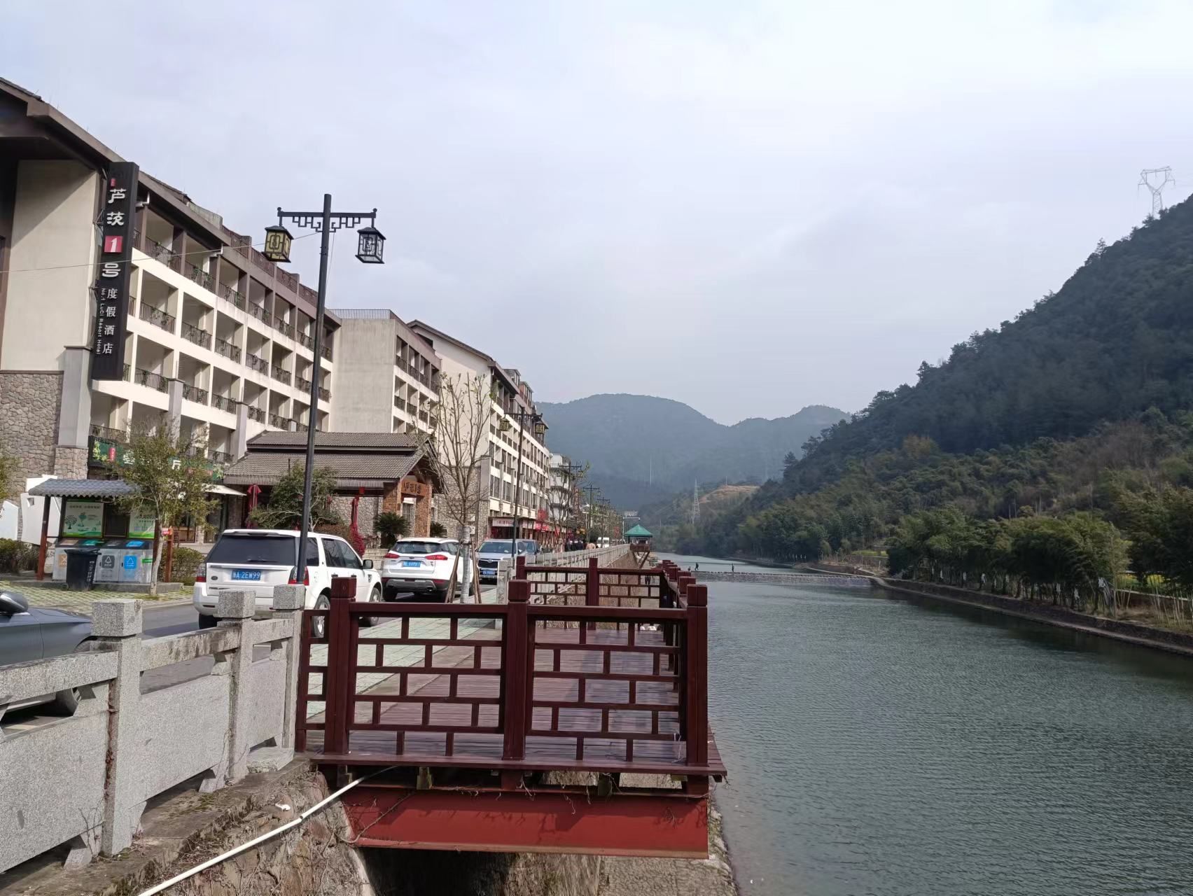 但因为阴天,有点小雨,天气不好,我们都没有太多在外边停留。中午到达芦茨村,出了太阳,就出去逛逛,原来的芦茨村因为修建富春江水库而沉在了海底,现在的是芦茨新村,沿溪而建,因为靠近富春江这独特的地理位置,主要以发展旅游业为主,很多的民宿和饭店,建的很漂亮,背靠大山,门前就是溪流穿过住在这里应该会很舒服吧