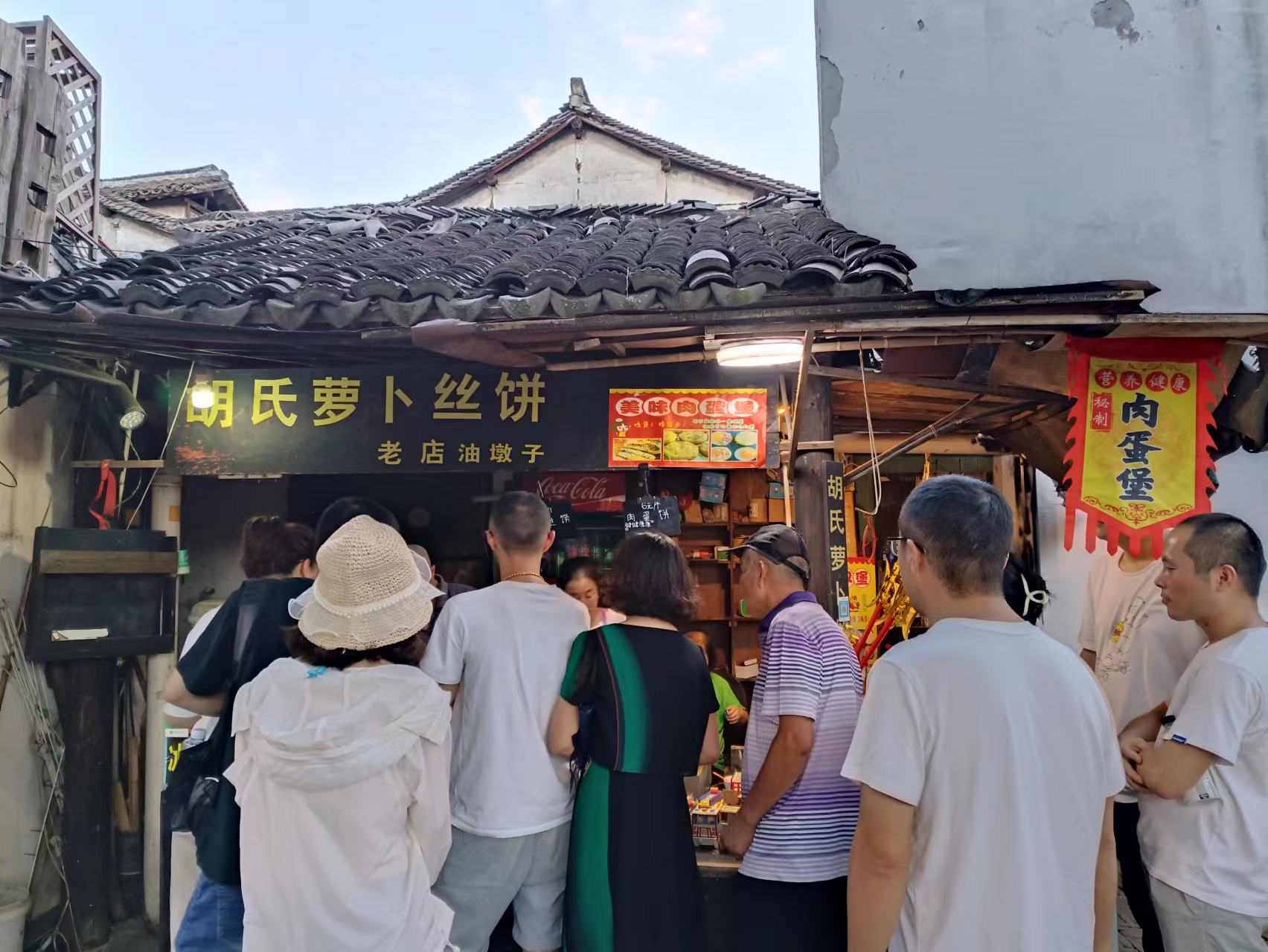 西塘古镇比较知名的为烟雨长廊,就是临河而建的沿街廊棚,是一种连接河道与店铺又可遮阳避雨的水乡特有建筑,西塘至今保存着1300多米长的廊棚,在烟雨长廊的起点有一家胡氏萝卜丝饼的小店,他们家的萝卜丝饼和肉蛋堡都很好吃,如有看到可以尝尝