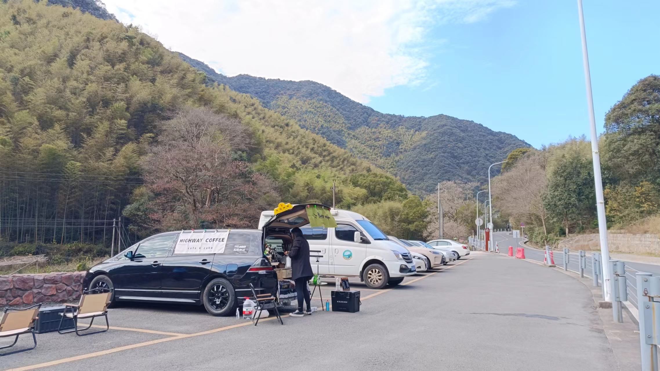 溪上村不好停车,再往前走百米左右路边有个停车场,这里可以停,停车场上有个小姐姐在卖咖啡,远山、溪流、村庄、咖啡,自由自在的味道。今天天气不错,冬日里的太阳暖和和,溪上村着不到太阳,比较阴暗,以至于我们以为已经很晚,看了下时间也才下午3点