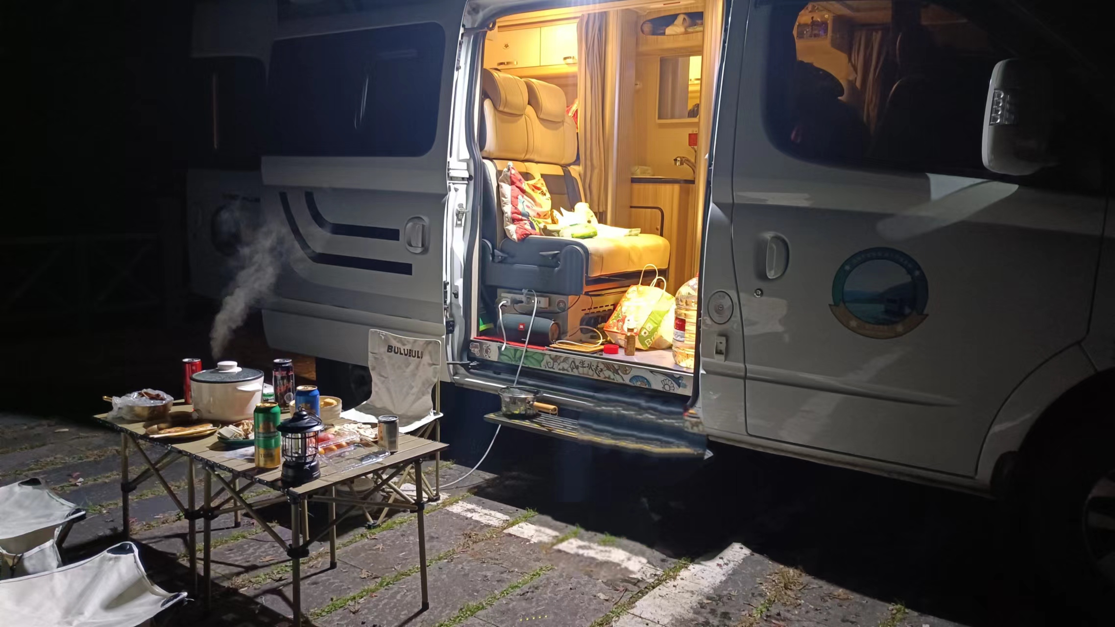 夜间下了雨,似乎还不小,睡在车里,听滴滴答答的声音落在车顶上,竟完全没有影响睡眠,自然的白噪音,很舒服。睡醒已经早上9点半,暖和的被窝里完全不想起床,儿子倒是呆不住,睡醒了就要起,自己出去跑了一圈,回来喊着饿了,那就起床准备早餐吧。老婆收拾,儿子玩耍,我来整点吃的