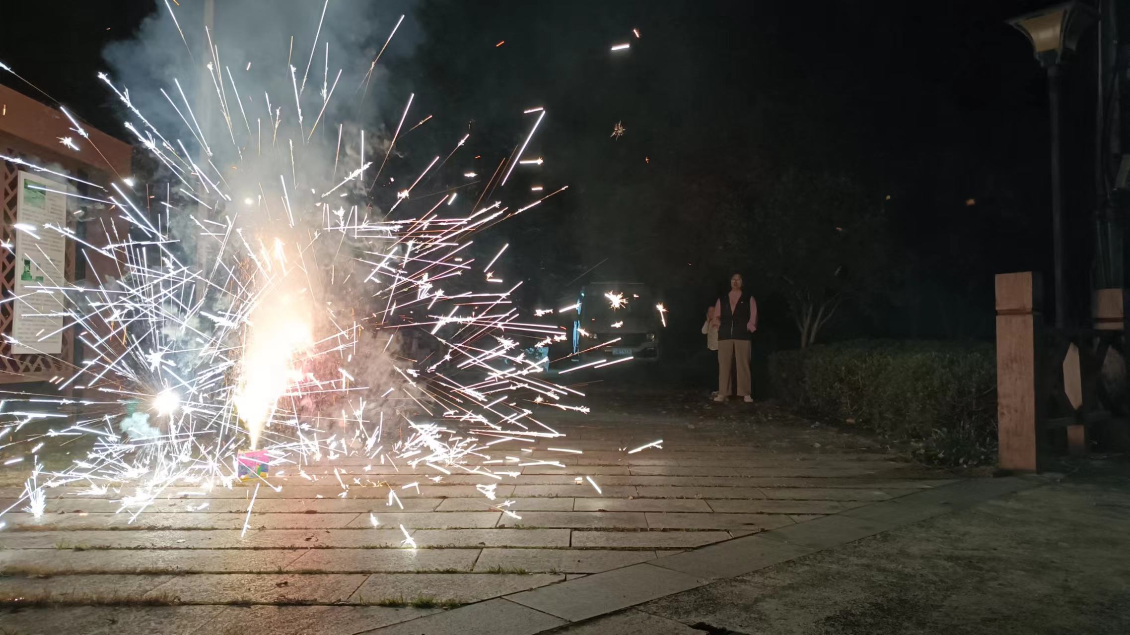 乡村的晚上很安静,这种安静是城市里绝对体会不到的。带了烟花,儿子心心念念,点燃,噼里啪啦,绚烂夺目,恍惚间竟然有了新年的味道