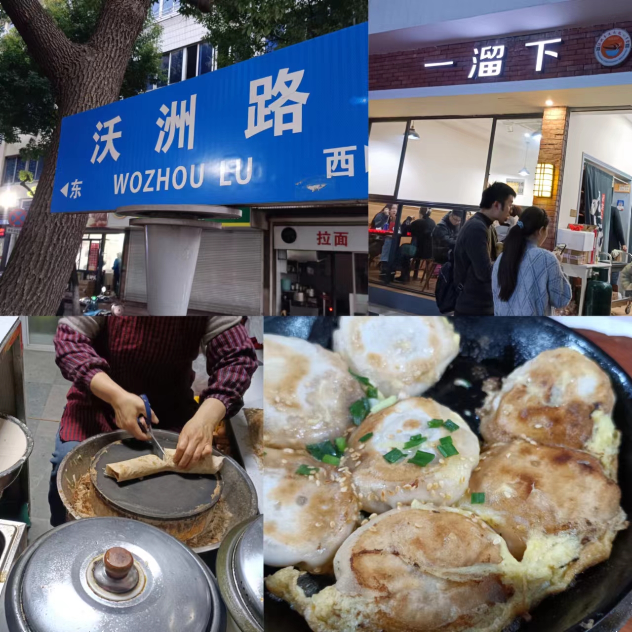 炒年糕吃完了,但并没有吃饱,炒年糕算是我们的午饭,接着去吃晚饭了,据说沃州路聚集了很多的小吃,我们下一站沃州路,一溜下的芋饺,不知名店铺的春饼、广东粥城的生煎豆腐包吃了一顿丰富的晚餐。这里的小吃跟我们其他地方吃到的都不太一样,这里的人对豆腐情有独钟,这里的粥店竟然能营业到凌晨三点,这里给了我们好多的惊喜