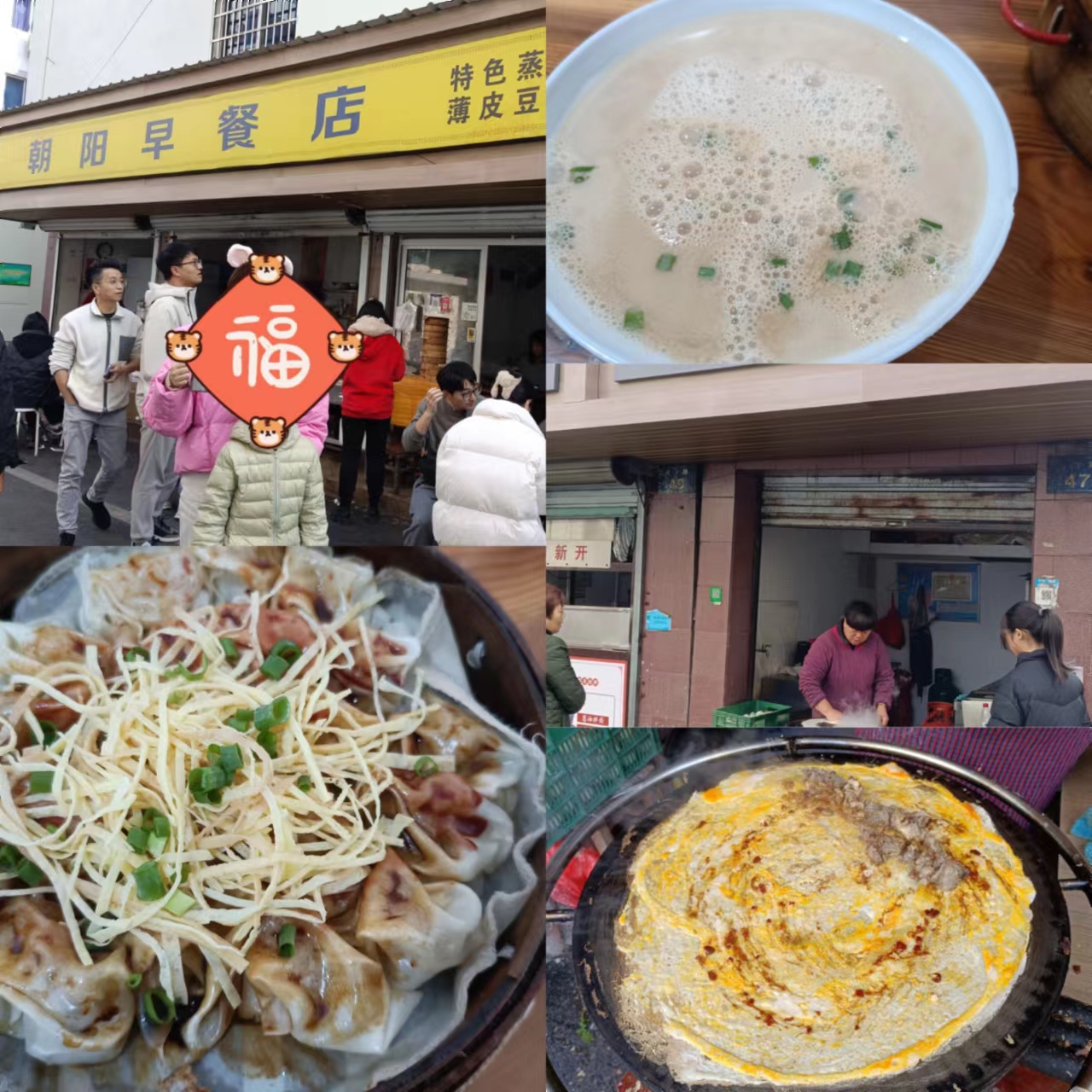 一夜好觉,到了碳水王国,原本准备的早餐面包也不吃了,打卡朝阳早餐店,离我们停车的地方只有几百米,走路过去很近,点了几笼蒸汤包,一碗咸豆浆。蒸汤包味道不错,上边还撒了鸡蛋丝,跟我印象中的汤包不一样,在上海吃的小笼汤包里有汤,这个没有,新昌的每一种食物都很特别。旁边小店点了一份锅拉头,锅拉头跟山东煎饼做法及味道相似,不一样的是锅拉头用的鸭蛋,每份2个,同时加了芋头,很香。做锅拉头的大姐说,新昌人不做早餐,早上都出去吃,所以新昌的小吃很多,也都各有特色