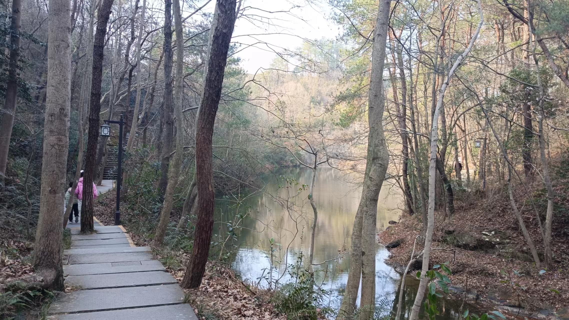 从放生池这里往左走是大佛寺,往前走是一片山林,环境清幽,没什么人会走这里,我们没注意到大佛寺就直接往前走进了这片山林,山林里很安静,道路也是铺好的,走起来很轻松,延伸进去不是特别长,静下心来走一走挺好的