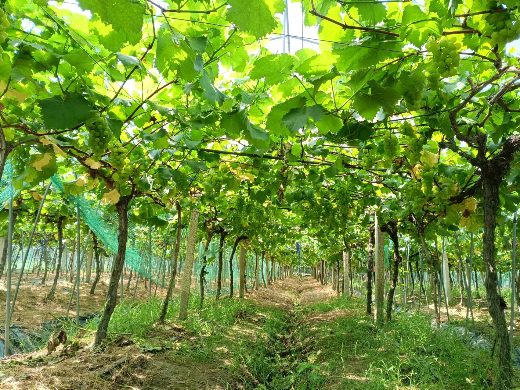 早上睡醒收拾好已经快10点,前往雪花潭景区,路上看到有很多水果采摘的基地,老婆对采摘情有独钟,于是就停车到了一个葡萄园去采摘葡萄,看一串串葡萄挂在枝头非常诱人,老板随手剪下一串给我们吃,然后说你们随便玩儿,就自顾自的忙去了。我们就边吃边看,葡萄新鲜自不必说,味道也是真的甜,葡萄12元一斤,我们挑了两串