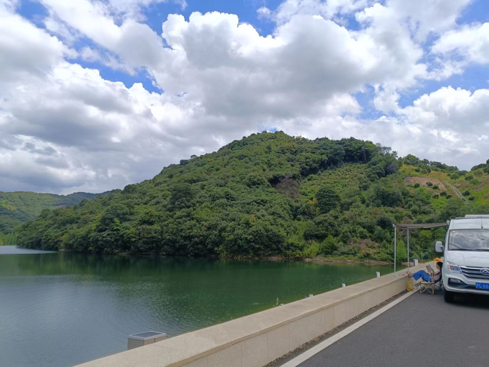 早上起床,老婆收拾自己,我就找找今天的去处,看地图离这不远有个状元岙水库,据说可以游泳玩儿水,不知道具体如何,只有几公里的距离,先去看看,车子开到,被眼前的景色给迷倒,蓝天白云下,青山环抱,湖水碧绿,泛起层层涟漪,这也太漂亮了吧,竟然还没什么人