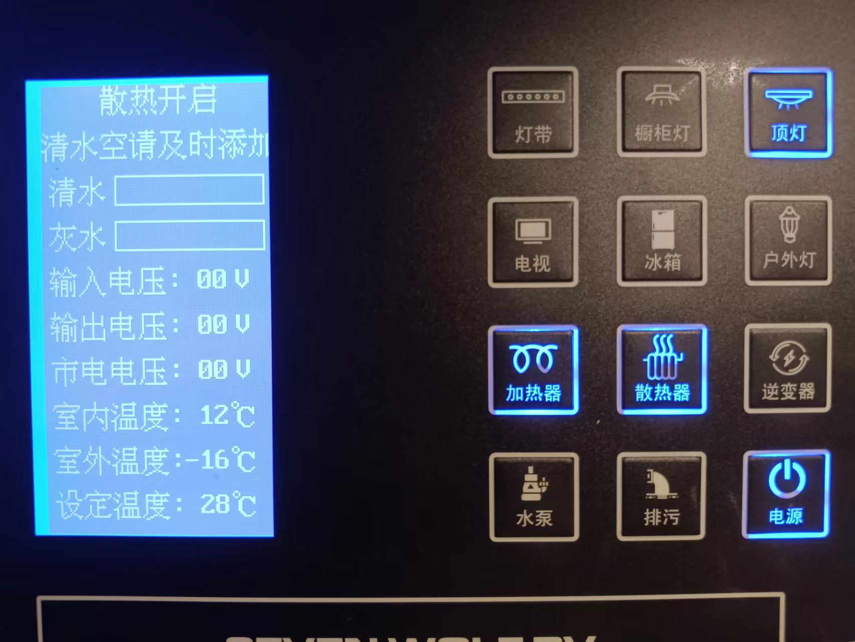 春节期间气温一直在-7°C至+6°C之间,零度以下水会结冰,房车是水箱只是简单的做了保温,感觉抗不了零下的温度,所以在回去之前已经放空了水箱。好在车子就停在家门口,用水方便,就用12L的水桶装了一桶水洗漱用,饮用水一直都是用的桶装水,放在车内没有影响。洗漱需要用热水时就用烧水壶烧开来用,车上电足够,用不完,所以一般的电器都可以随便用。没有在车上洗澡,隔三岔五会去县城洗浴中心,毕竟那里洗澡更舒服。其实房车上有柴油暖风热水一体机,可以加热水箱里的水直接出热水,但是水箱放空就没办法加热直接出热水了,感觉这是个bug,就是天冷的时候才需要用热水,天冷水又会上冻,可能我使用姿势不对?后边再问问售后那边吧