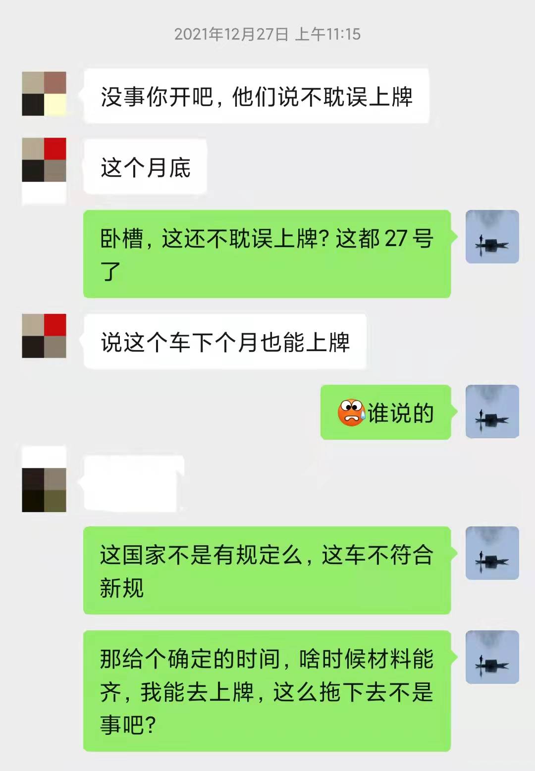 随着时间一天天的过去,一天几次的催促,但依然没啥作用,我还是没有拿到上牌的资料,从失望到无奈到崩溃,12月27号,又问销售小哥,虽然依然没有资料的消息,但得到了答复,这车并不是12月底之后不能上牌,新规的过渡期到2022年3月31号,在这之前都能上牌,我特意去查了下确实是这样,之前对新规理解有错误,虽然说下个月依然能上牌,但这么拖下去也很心急