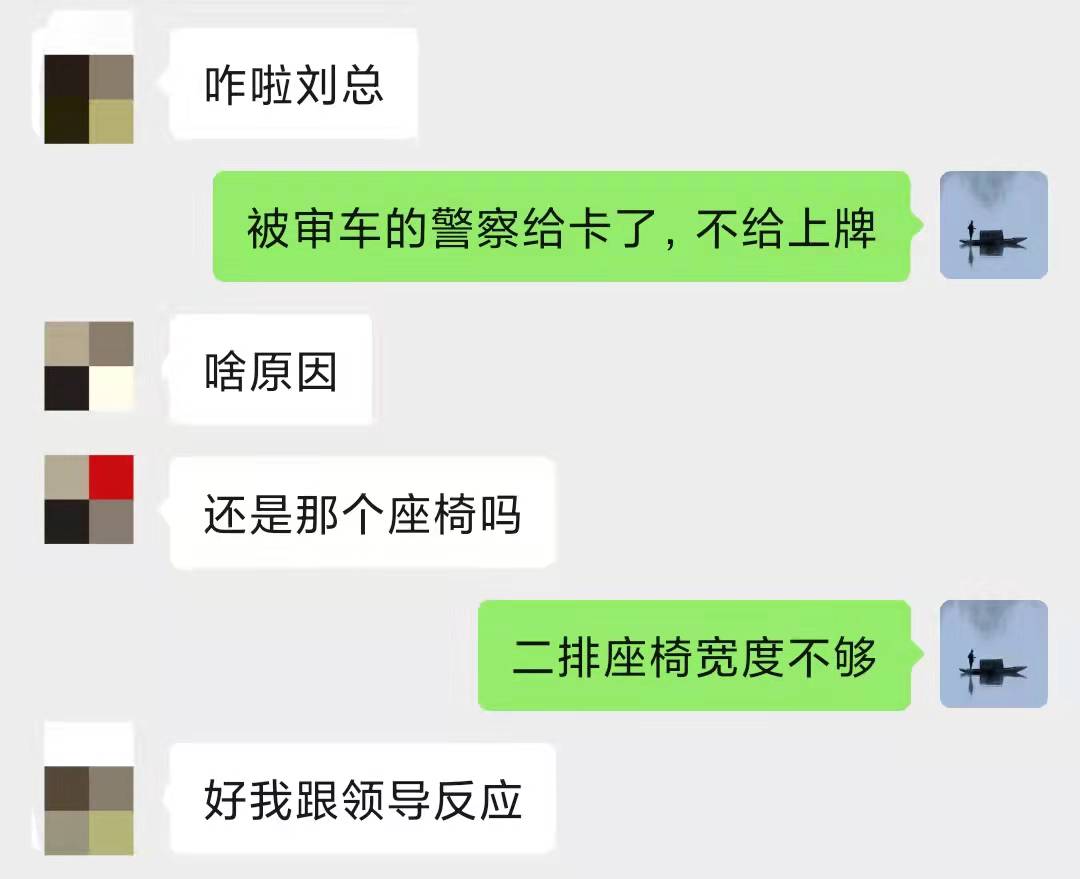 关于这个座椅,当时提车的时候我就觉得有点窄,房车厂的小哥告诉我这是房车专用座椅,符合法律法规的要求,我竟然也信了,现在这情况一来联系他们处理,二来我自己也去跑下汽配城看看能不能临时给改下先让上牌吧,时间耽误不起,我也没有太多的时间和精力耗在这上边了