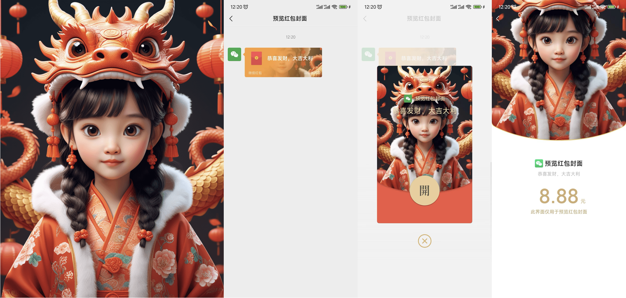 每年微信公众号都会给创作者定制红包封面的机会,我不懂设计,也不会作图,所以往年给到的定制封面的机会并没有使用,都浪费了,着实可惜。而今年随着AI的发展,通过语言描述来生成图片的AI应用已经非常成熟,那对于我这种不懂设计的人来说,也有了制作出自己想要的漂亮封面的机会,于是我做了这个微信红包封面给大家,希望你能喜欢