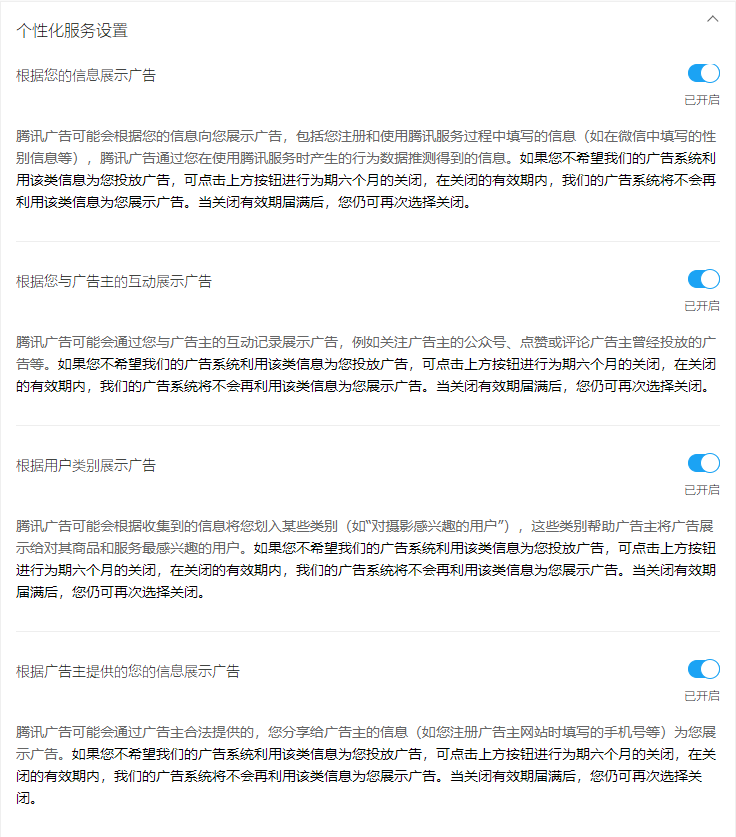 不过上边的设置只有6个月的有效期,6个月后还需要重新设置,如果你想彻底关闭定向广告推送,可以在腾讯隐私保护平台中选择退出,会调转到退出页面