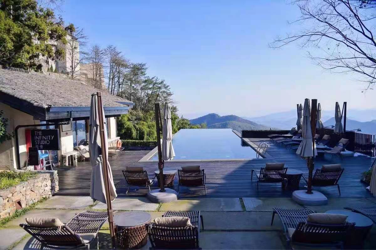 裸心堡实际上并非只是一个城堡,而是一个综合的旅游度假村,除了住宿外还有很多的其他功能,例如山间徒步、骑行,室内瑜伽、台球,真人CS场地玩儿CS,露天的无边泳池游泳