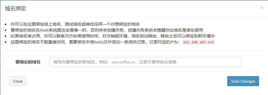 由于可以绑定任意域名,所以没办法添加DNS解析,故这里需要用户自己绑定hosts了