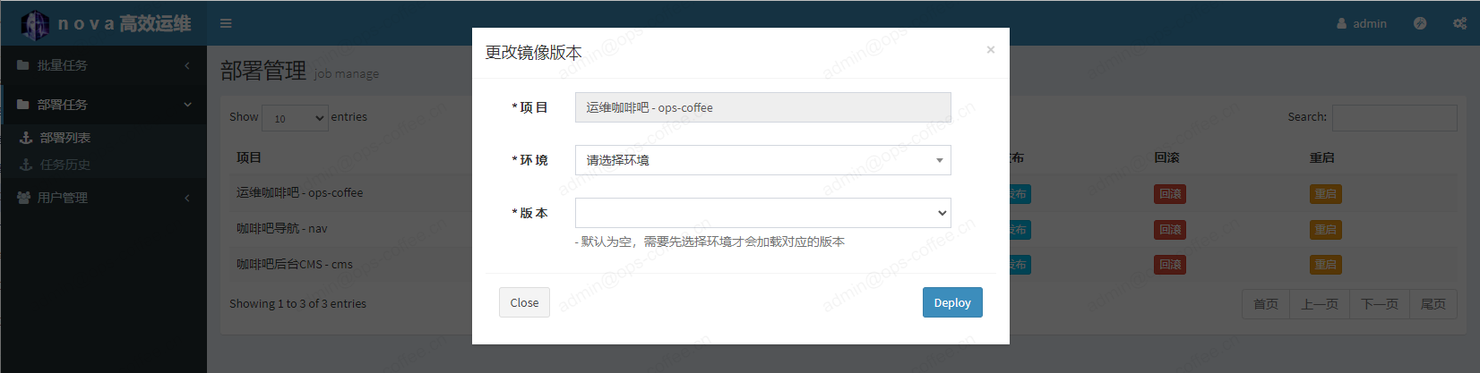 nova系统主要用来做生产环境的持续部署,之前的文章里也有介绍,由于我们的环境比较复杂,公有云、私有云、云主机、物理机、Kubernetes等都有使用,并且分布在不同地区的机房,为了方便维护,我们专门抽离了生产环境的部署功能做了nova系统