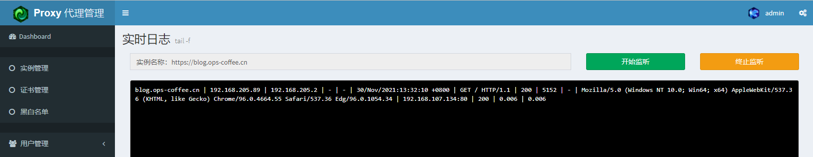 另一个修改是,可以编辑是否开启日志,如果开启的话还能在页面上实时监听日志,这对于某些排错的场景非常好用,实时监听日志就是模拟了tailf的功能,感兴趣的可以查看这篇文章:Django使用Channels实现WebSocket