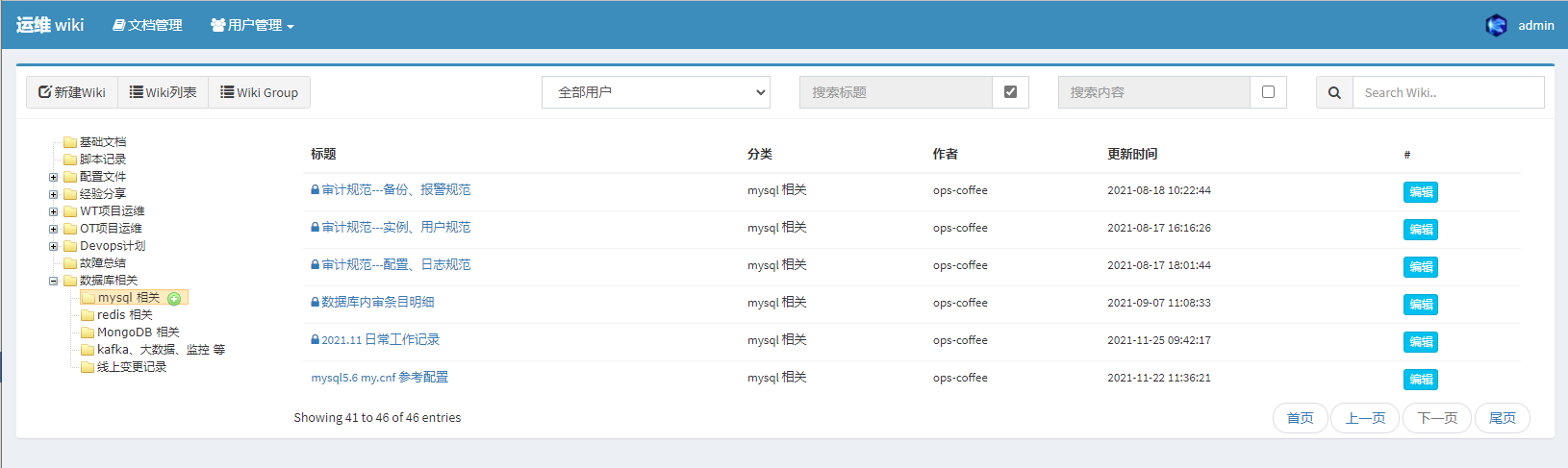wiki整体功能没有太大的变化,只是强化了搜索功能,首页依然是个目录树,内页则只有内容,聚焦重点,没有花里胡哨的功能,不过随着目录的越来越多,后边若是重构则会考虑增加空间的概念,团队与团队,板块与板块之间做个区分还是很有必要的