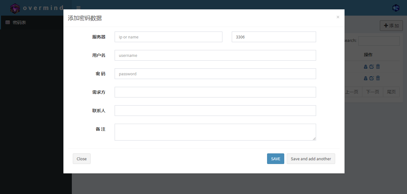 列表页:列表页使用了datatables插件方便展示,且使用了Django的模板引擎直接渲染