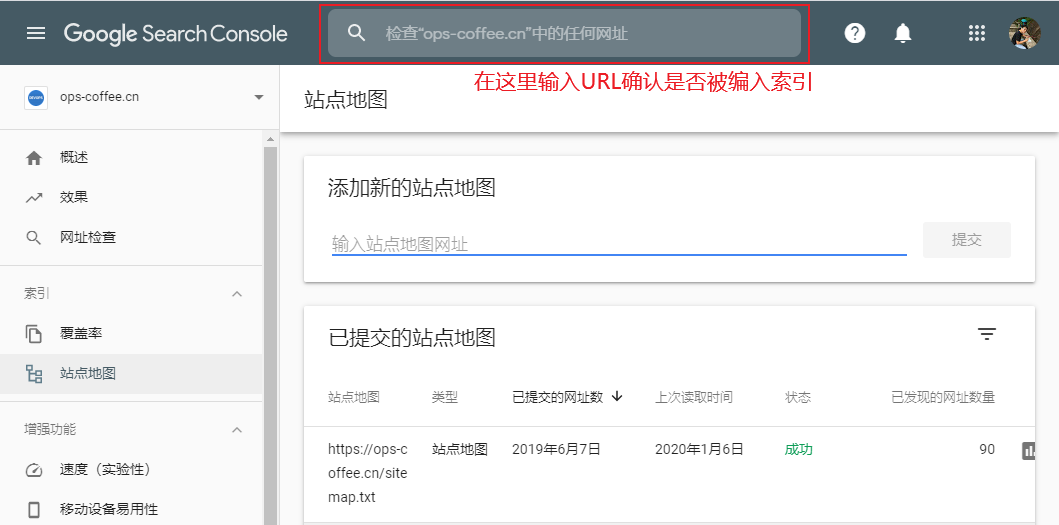 登陆Google Search Console,提交你的sitemap
