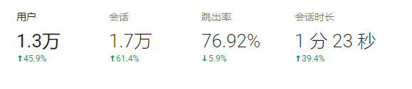 上图来自与Google的分析工具Analytics(以下简称GA),建议给网站内添加GA检测代码,虽然国内不能访问Google,但是GA检测代码是不受影响的,添加之后可以关注一下这两个值,努力将跳出率降低以及提升用户会话时长