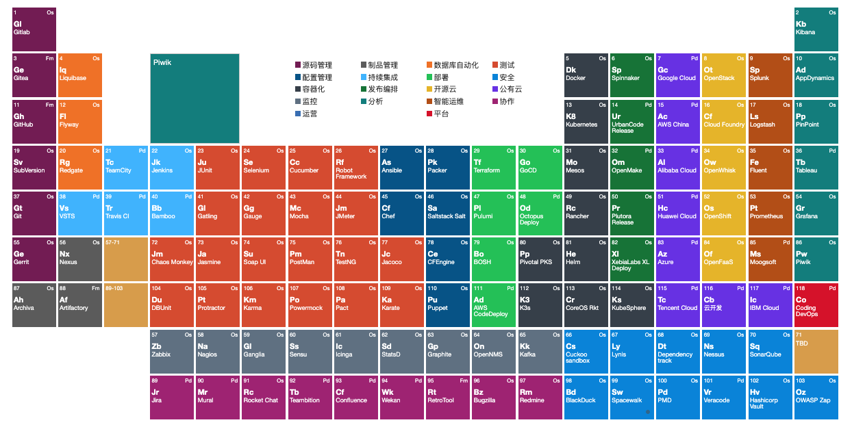 帮他换一套皮肤,帮他丰富下内涵,让他看起来更好看,用起来也更好用吧。有了这样的想法我就在想这个孩子该如何改变,这个页面该如何改版。DevOps相关的文章大都是在介绍一系列的运维自动化系统,那能不能把系统架构画出来,页面上展示架构,架构里的每个模块都可以点击,点击之后跳转到相应模块都介绍页面去,就与我看到的DevOps工具元素周期表类似