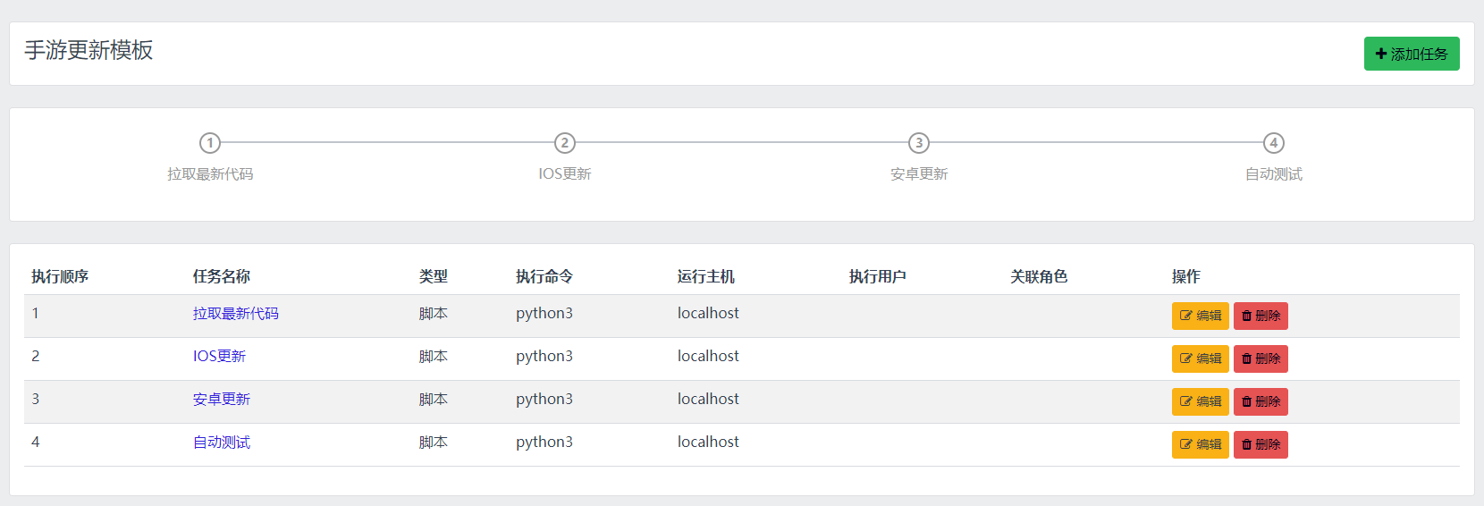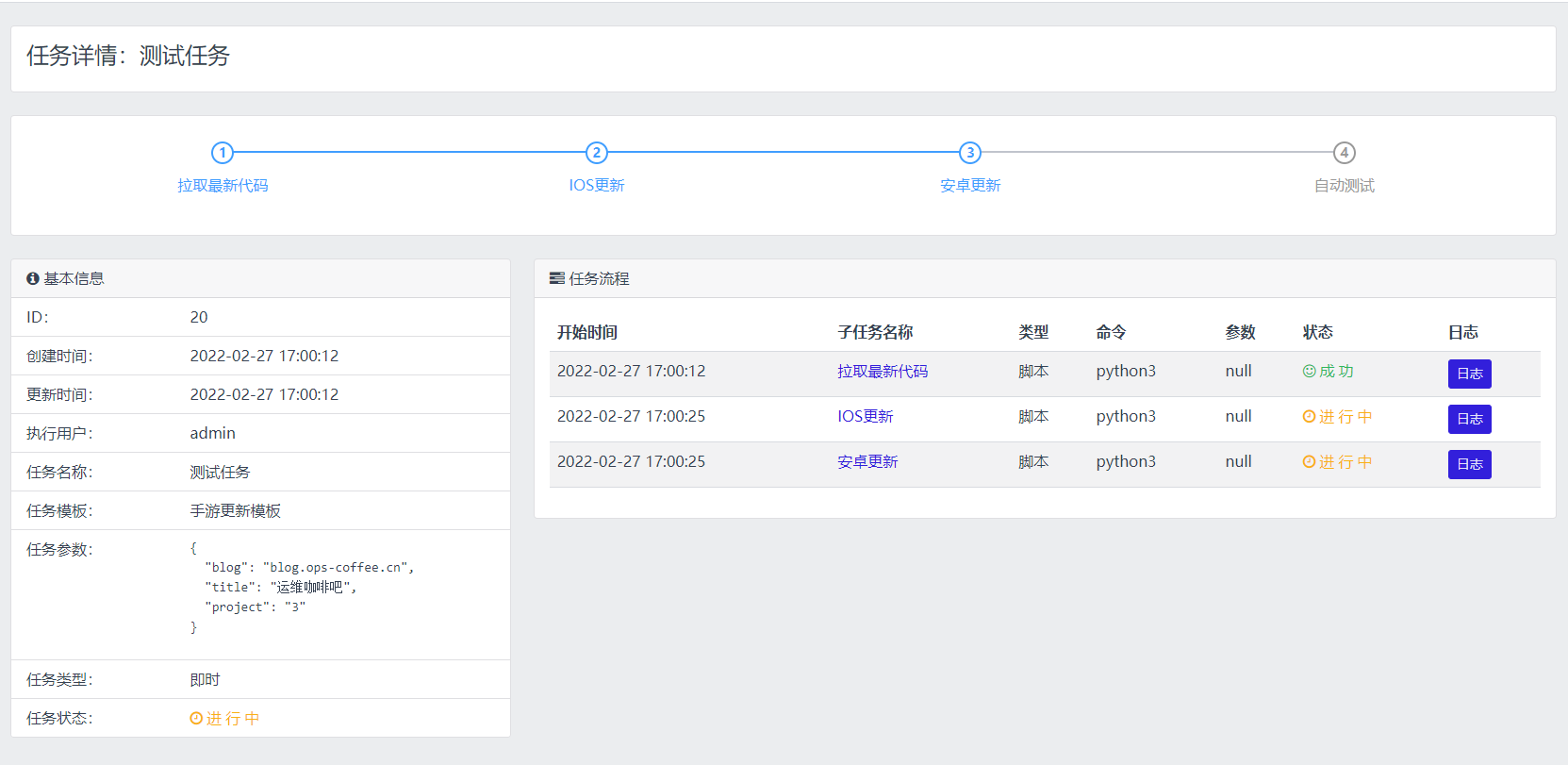 想清楚了执行逻辑,对于代码修改并不算复杂,当在模板里把IOS更新和安卓更新两个子任务执行顺序改成一样时再执行就看到他们两个同时开始执行了