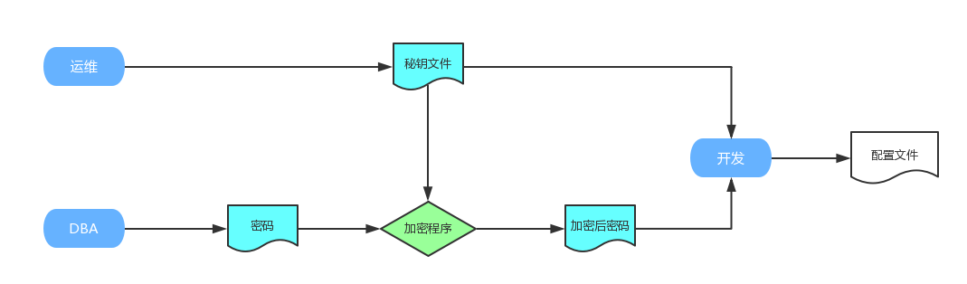 秘钥跟代码分离,这样在整个过程中,开发、运维都无法接触到数据库密码,每个角色得到的信息都够用且最少,减少中间出错或泄露的可能
